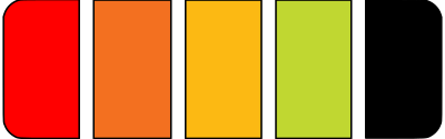 Scale of battery charge level showing 4 out of 5 using colors from red to light green