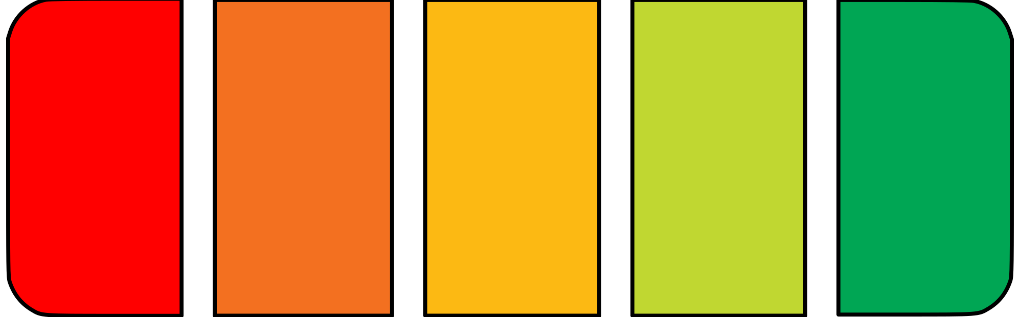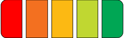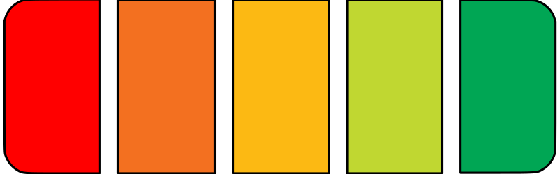 Scale of energy efficiency or battery charge level showing 5 out of 5 in red to green colors