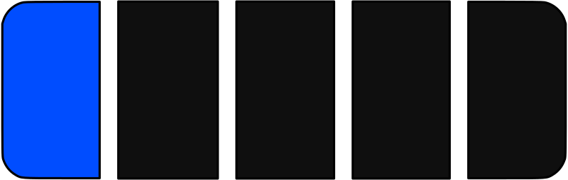 Scale of energy efficiency or battery charge of 1 out of 5 in blue