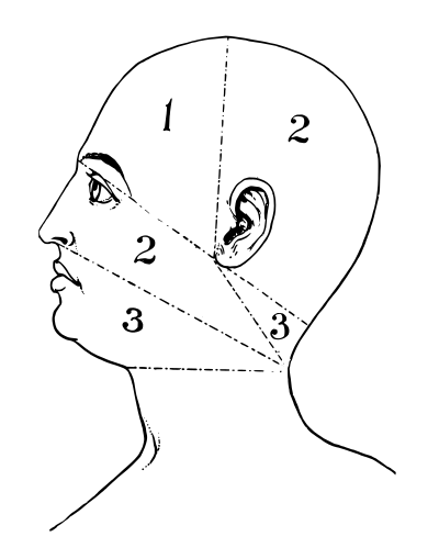 an old and cryptic diagram of a person's head