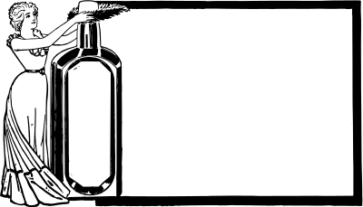 a lady, a bottle and a simple square frame