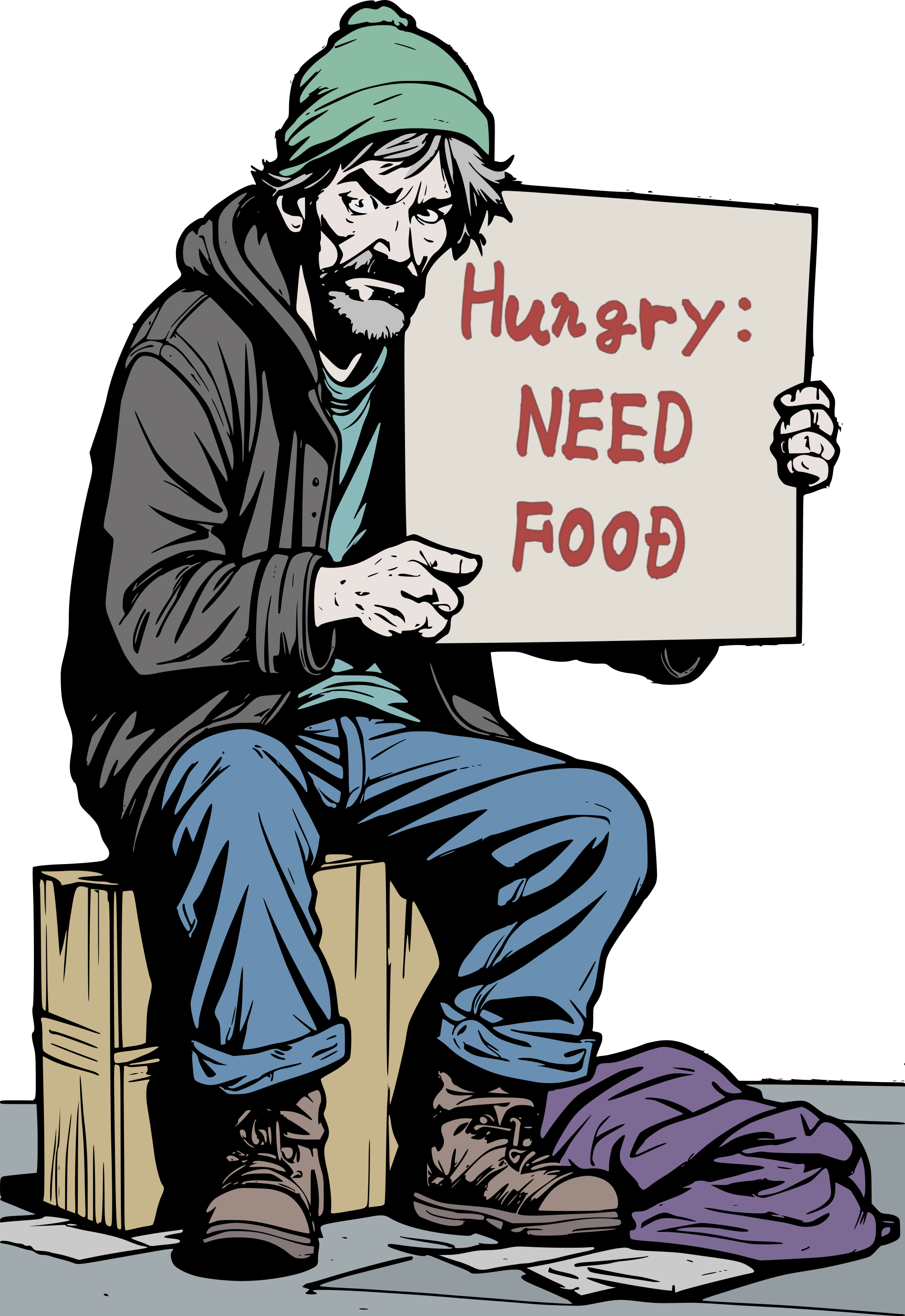 a hungry unhoused man letting people know