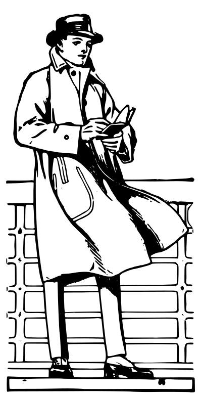 man in a trench coat writing down notes