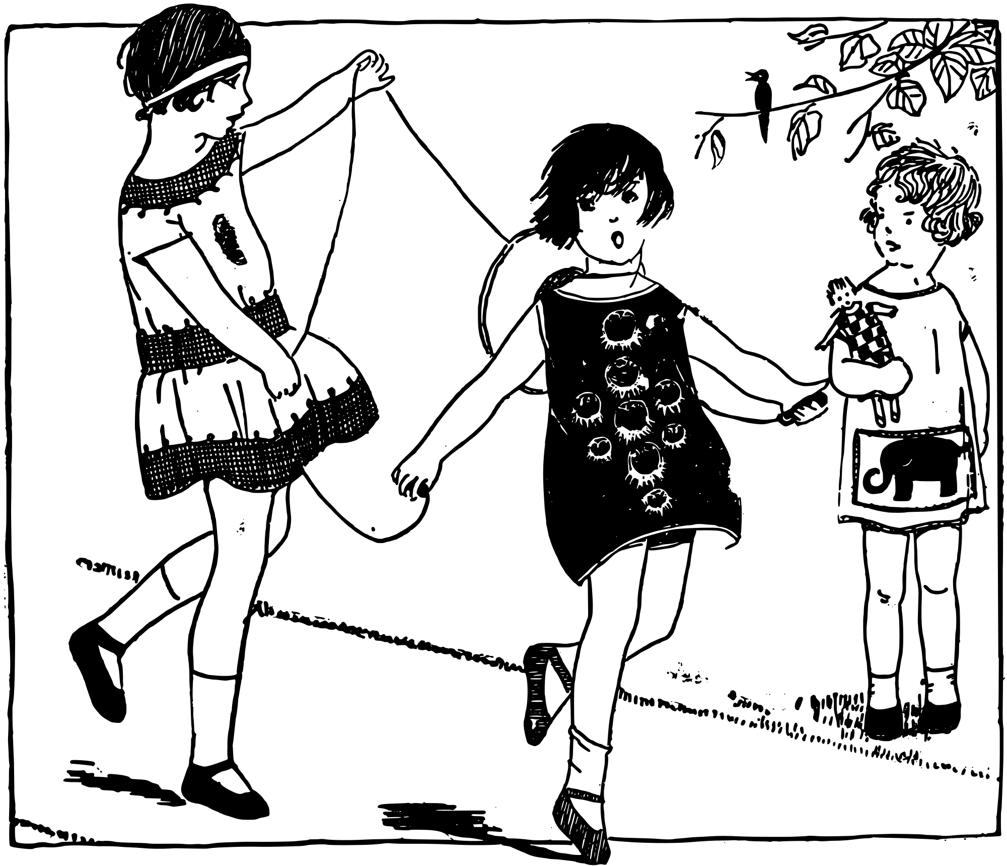 Three Girls in Dresses Playing