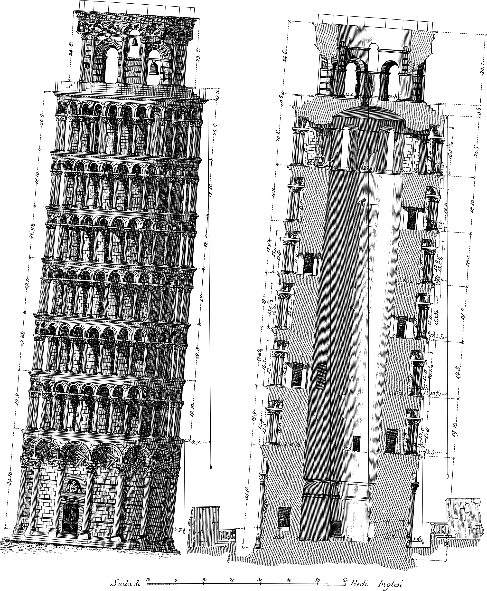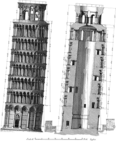 Vintage Leaning Tower Of Pisa Diagram
