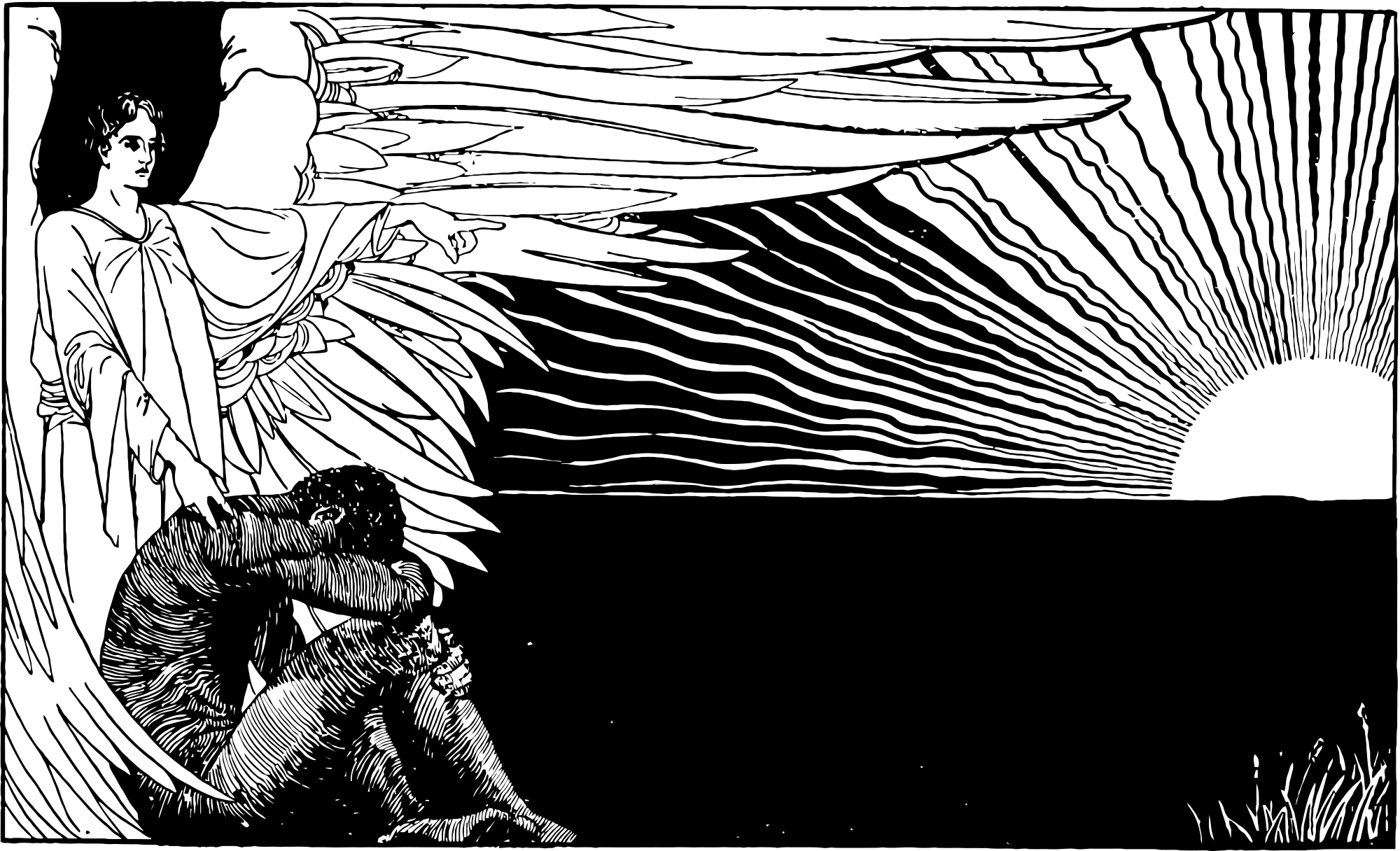 - illustration religious angel symbolic divine hope despair sorrow sunrise emotional ethereal