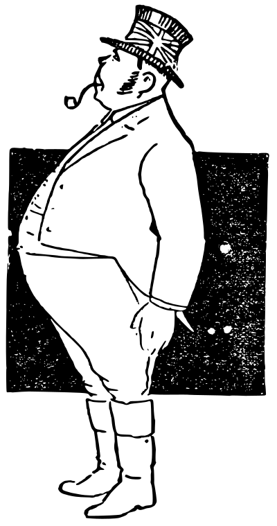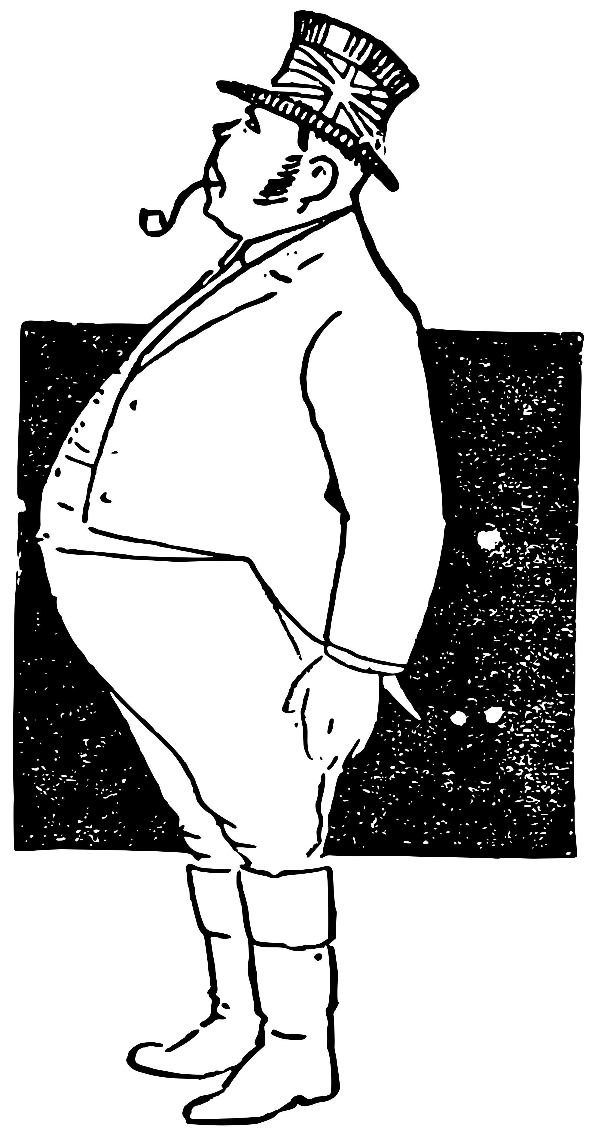 a heavy man with a top hat that seems to have a union jack on it