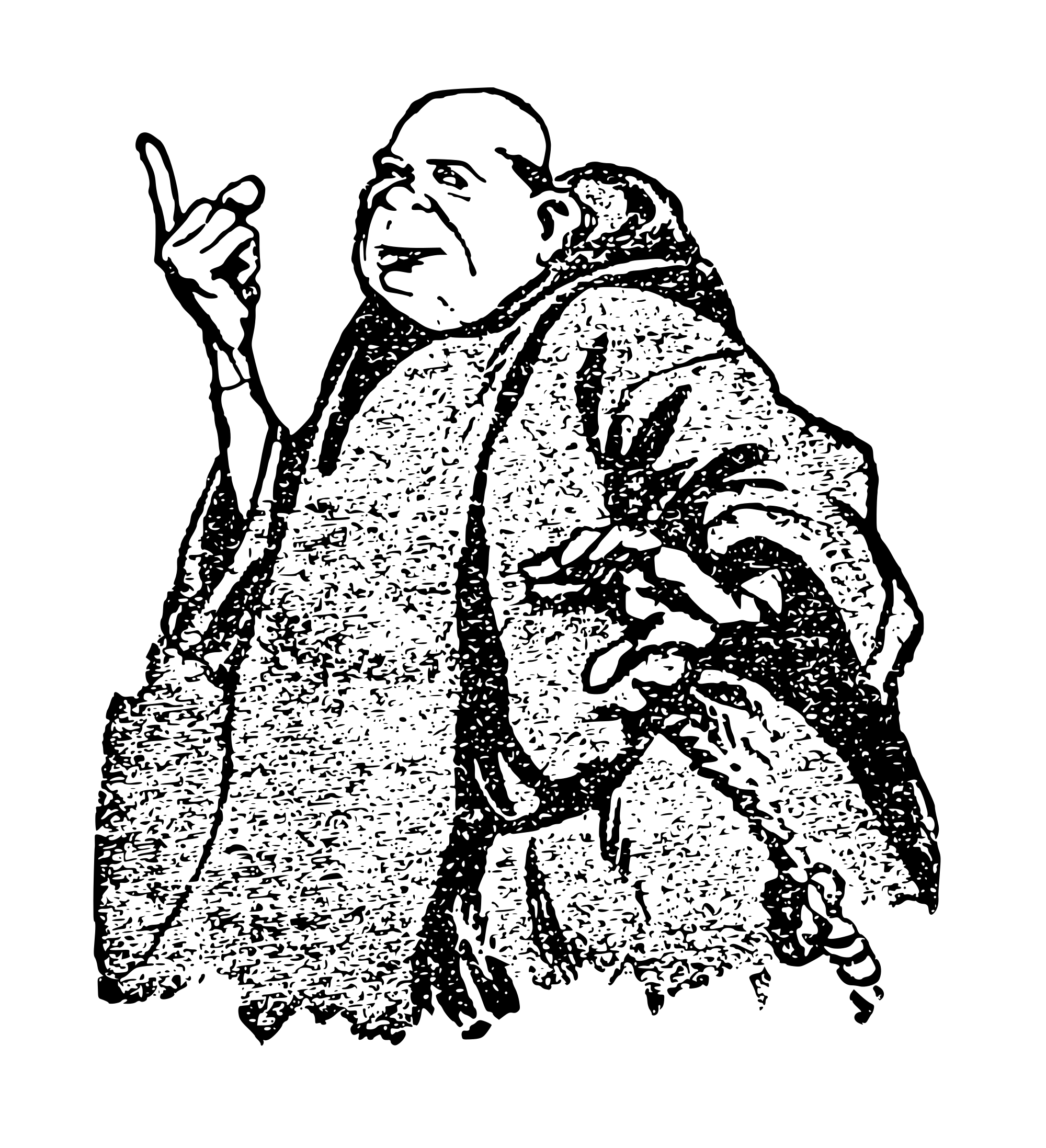 a monk with his finger out