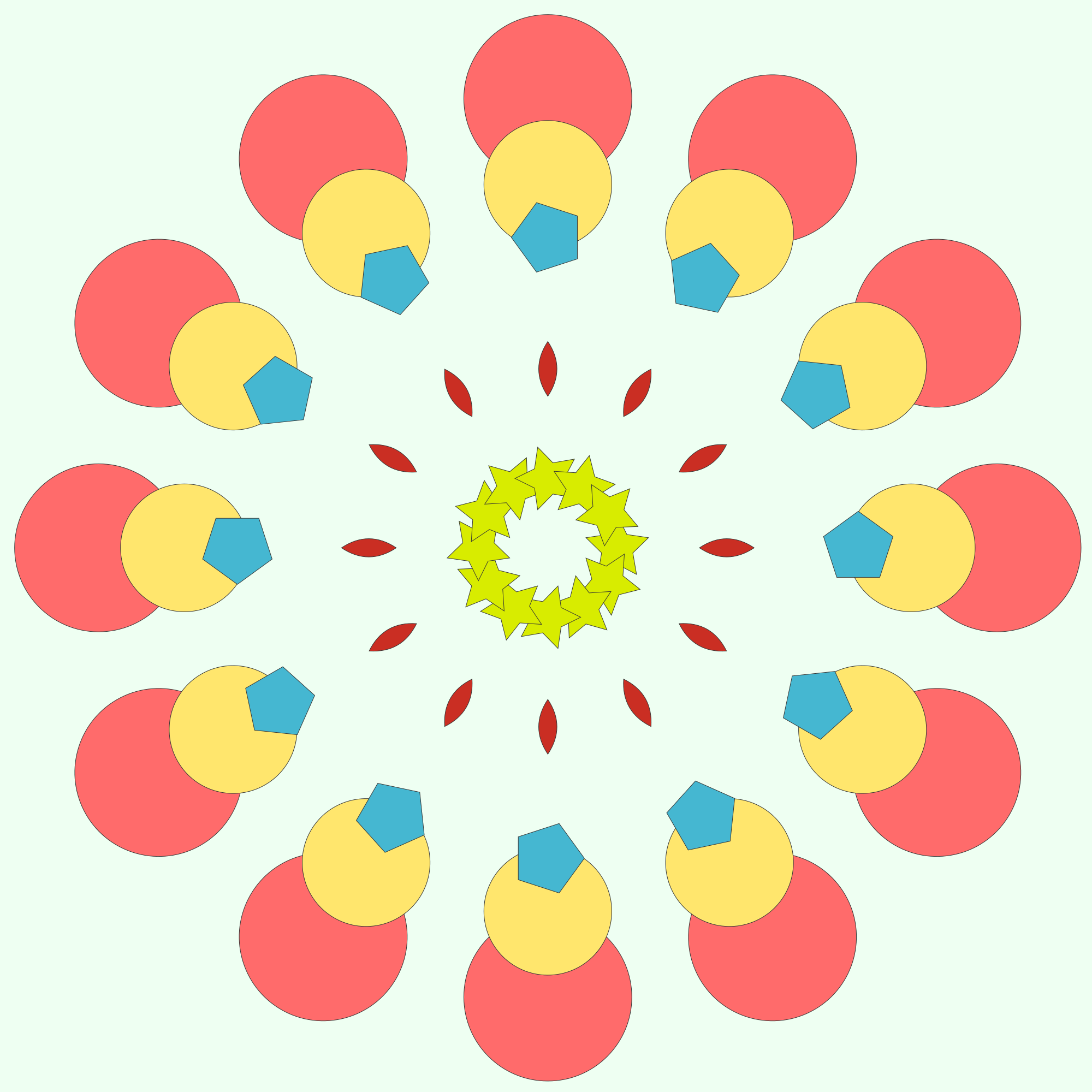 Here's another example mandala made in my mandala generator!Try it out yourself:https://openclipart.org/detail/351253/mandala-generator