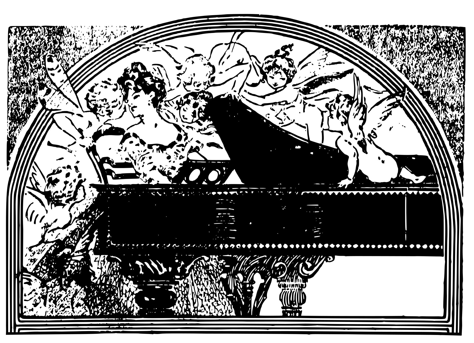 Piano Lady with Cherubs