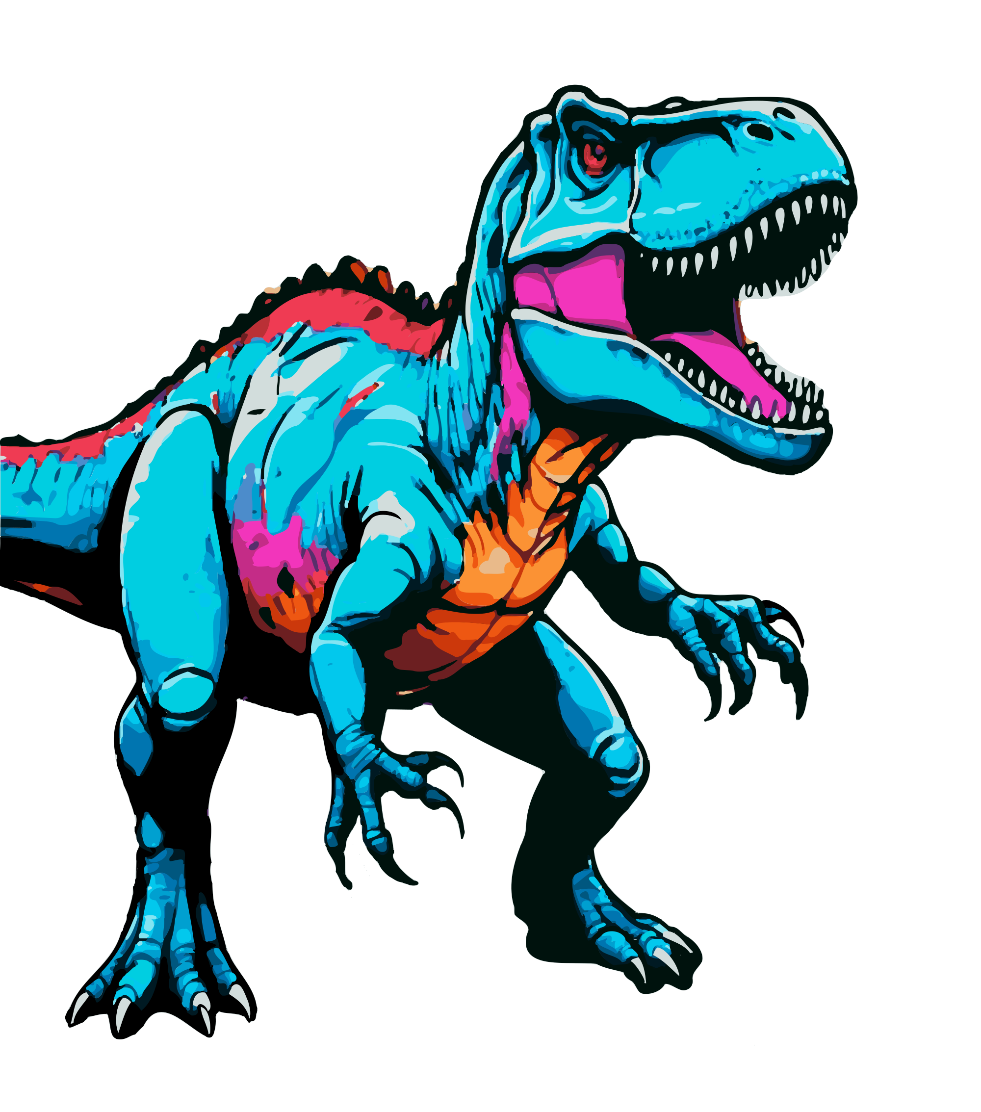 an angry cartoon t-rex wants to take a bite