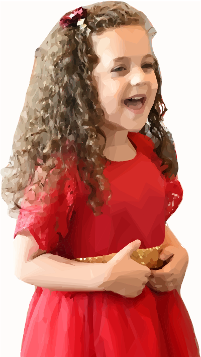 a little girl in a red dress singing (based on a public domain photo by govjustice)