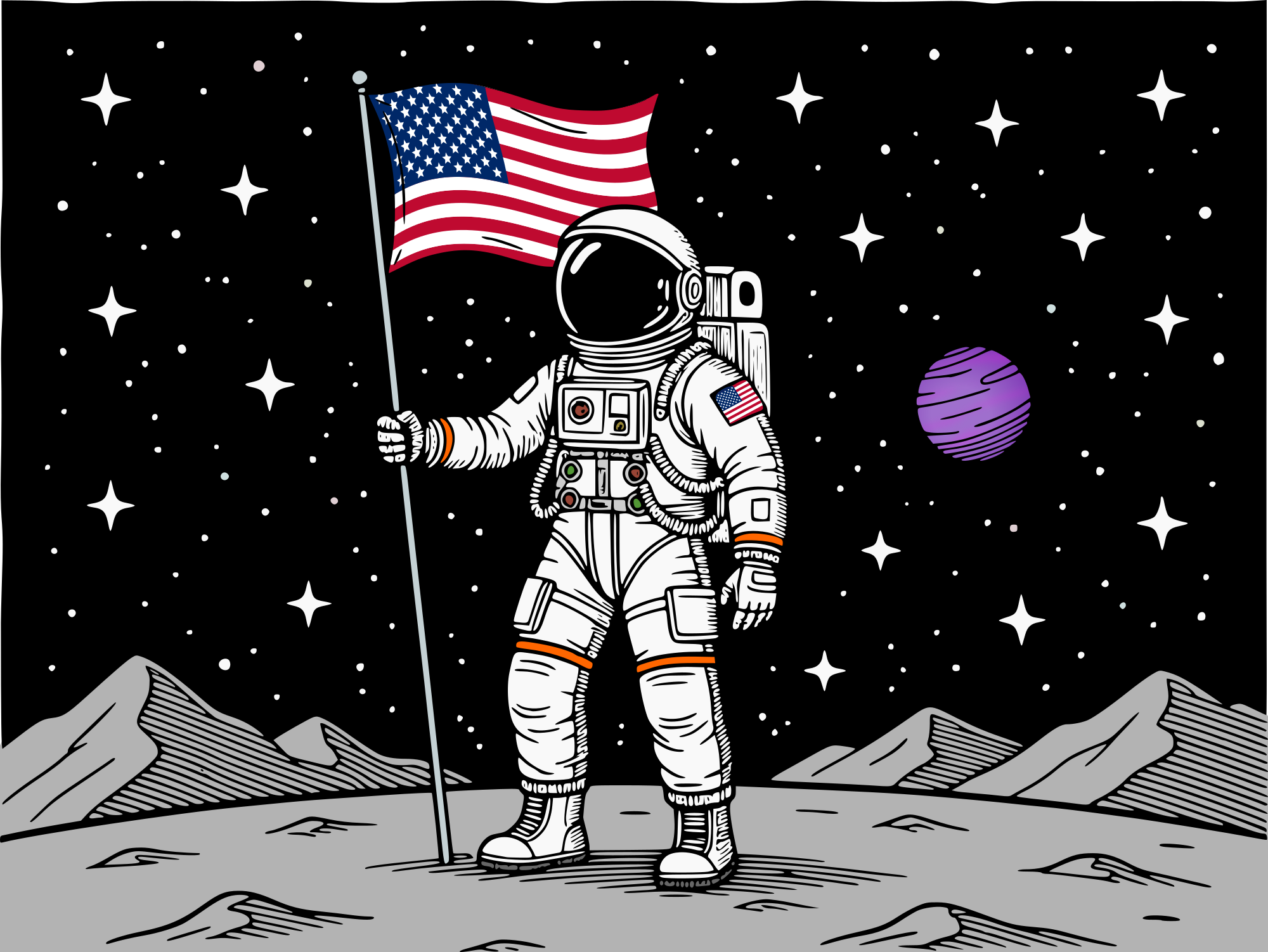 - American USA astronaut space travel moon planet surface man person flag NASA America remix+351522 remix+8120