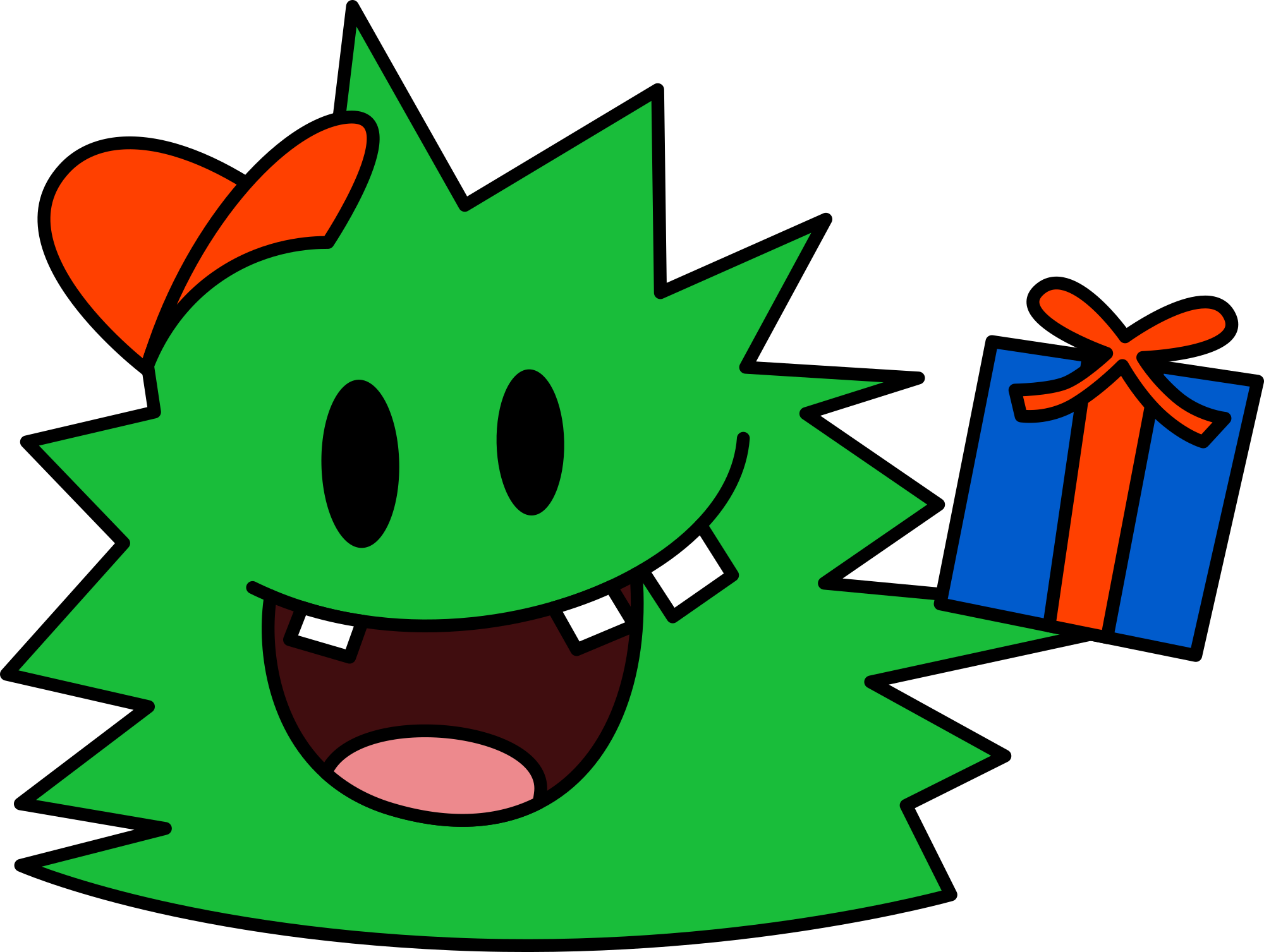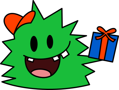 Green cartoon monster holding a present. Remix of Birthday Monsters.