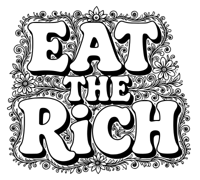 and a black and white (easy to print!) version of this text that says "eat the rich"