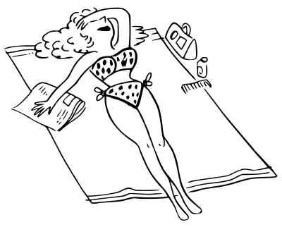 a lady relaxing under the sun (based on a public domain comic)