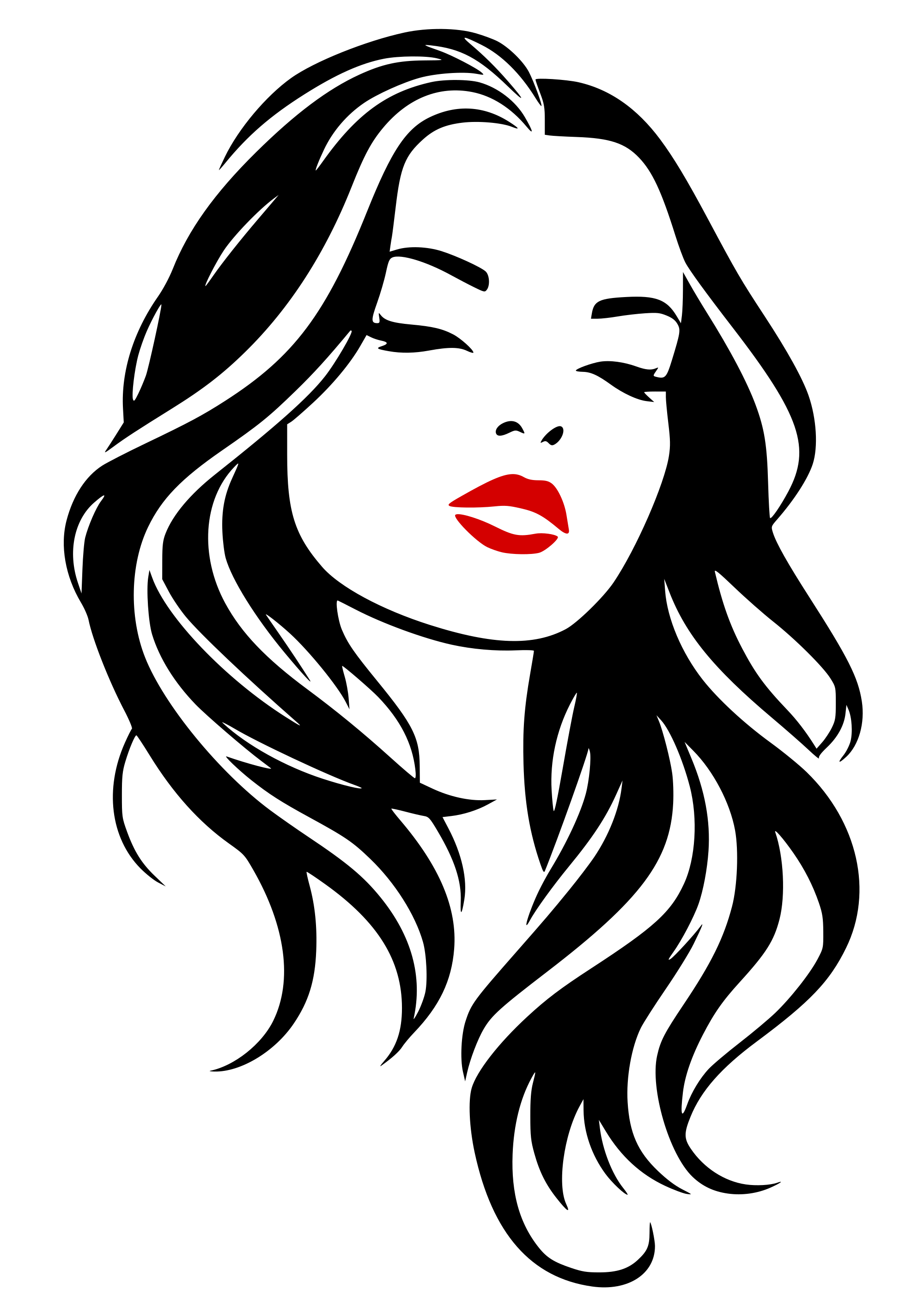 lady with red lips, eyes closed and thinking
