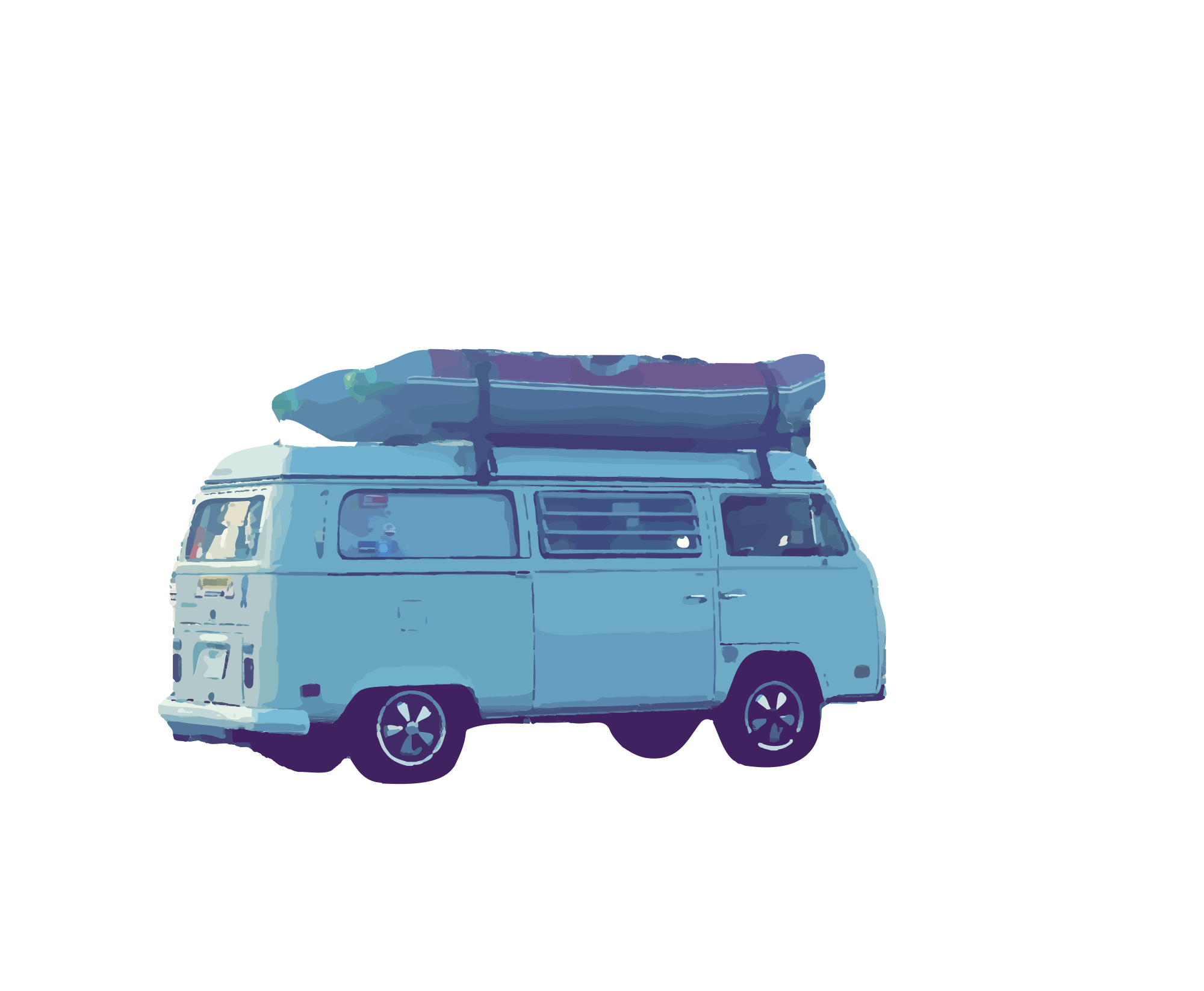 Volkswagen with something (a raft?) on top heading somewhere