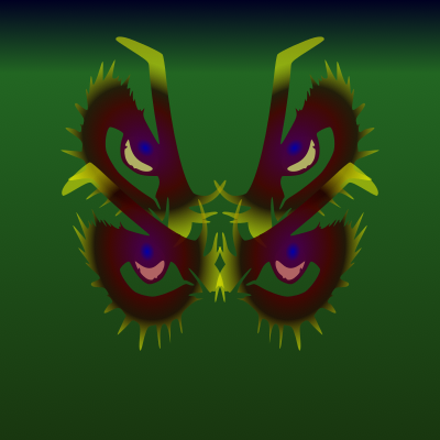 i liked phauna mini's wings and thought i could make a butterfly from eyes. it's looks more like a mutant bug tho, like something the evil priestess cooked up. still fun...