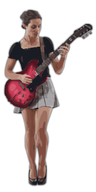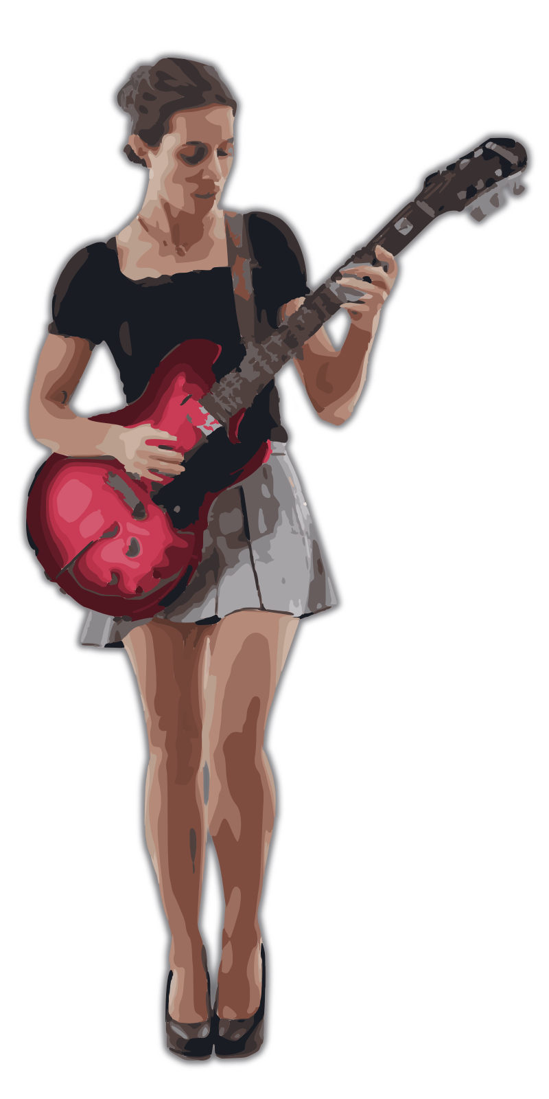 this lady is rocking out on a red guitar