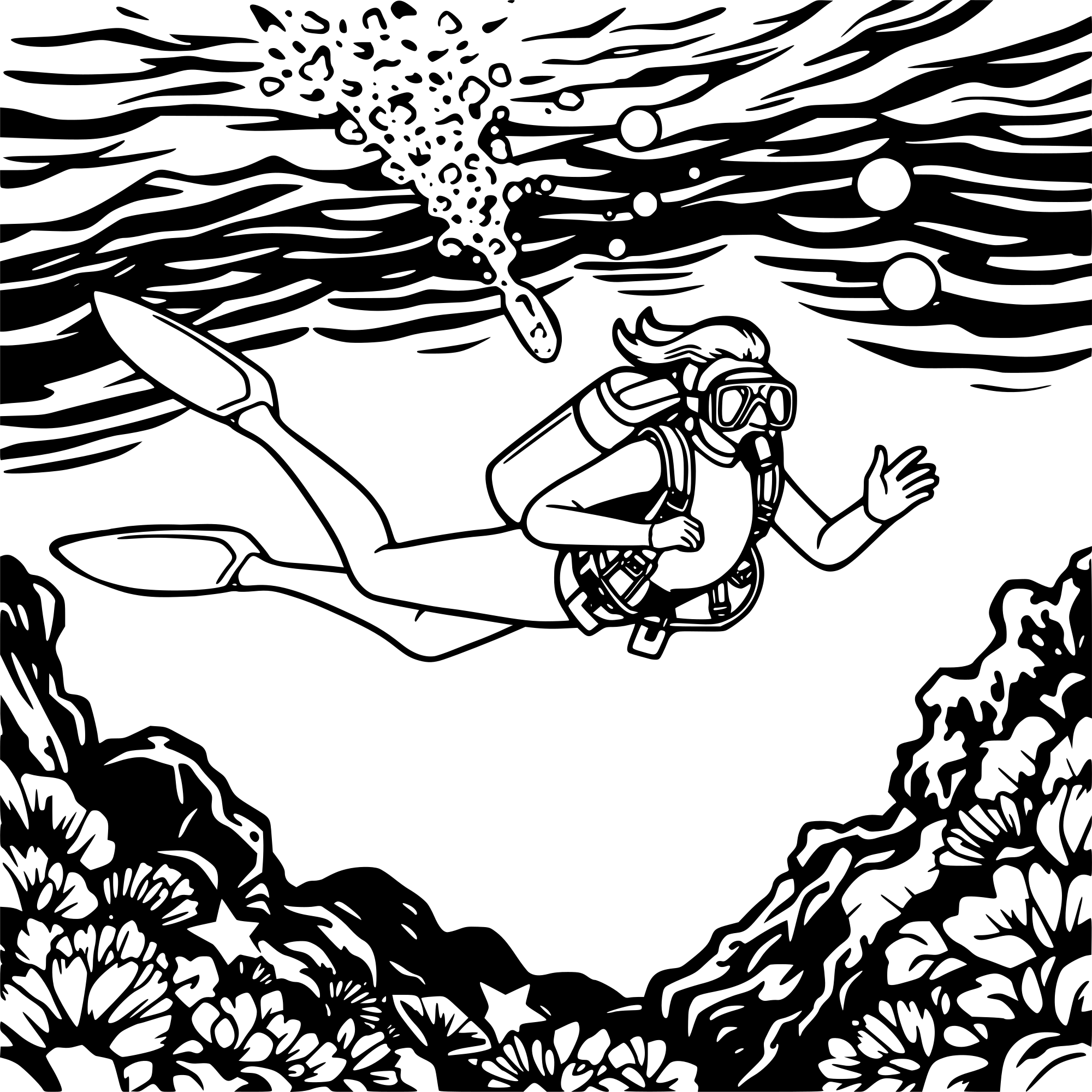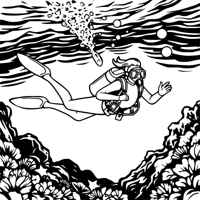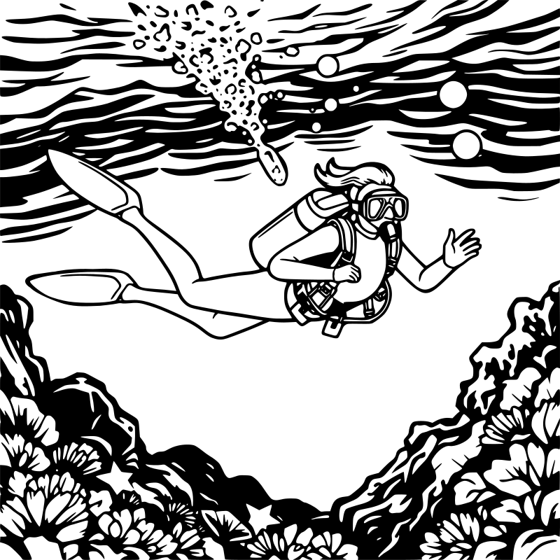 a lady diving underwater in a wetsuit and scuba gear
