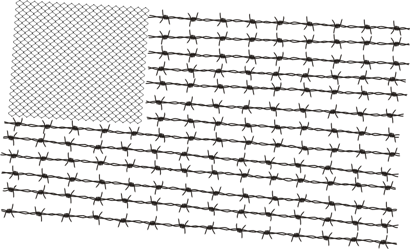 I never used to imagine America as a closed off angry society, but these days in the news, with all the anti-immigration and other rhetoric, it is really starting to look that way, so I made the flag as if it were a barbed wire (and mesh) fence
