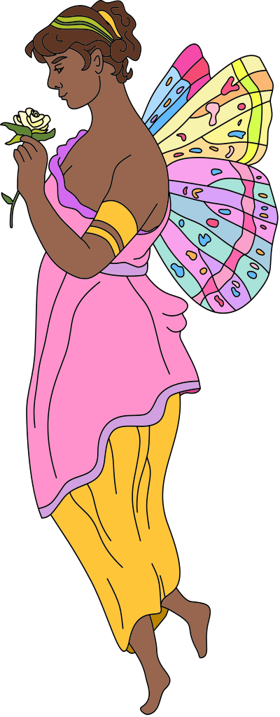 - fairies fairy fantasy linework coloring book coloring page lineart line art line work woman holding a rose colorful art Wm. S. Kimball & Co Julius Bien butterfly wings butterfly remix+352403
