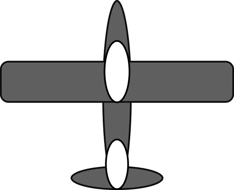 Simple grey plane shape with dark grey outlines and white highlighted areas. Or the grey area is highlighted. Your pick.