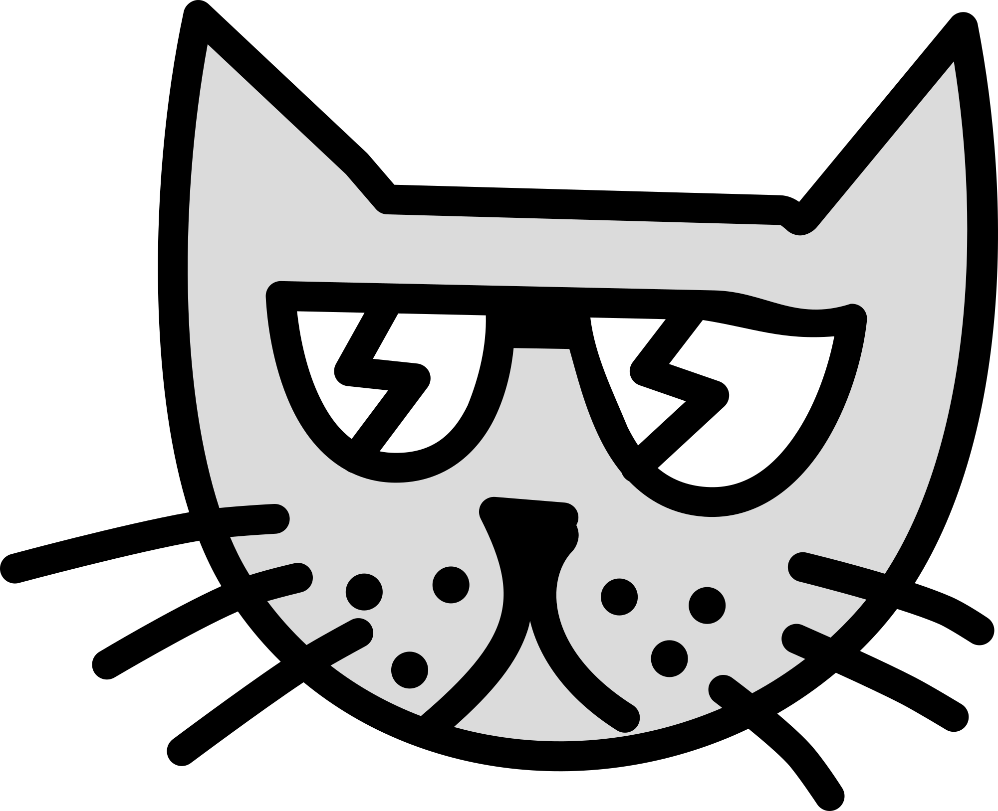 Cool cat. Greyscale. Ripped from Rones' awesome art ( https://openclipart.org/detail/99769/graffiti-cats-by-rones ) by qubodup and recolored a little. Minified with SVGOMG ( https://jakearchibald.github.io/svgomg/ "Merge paths" disabled).