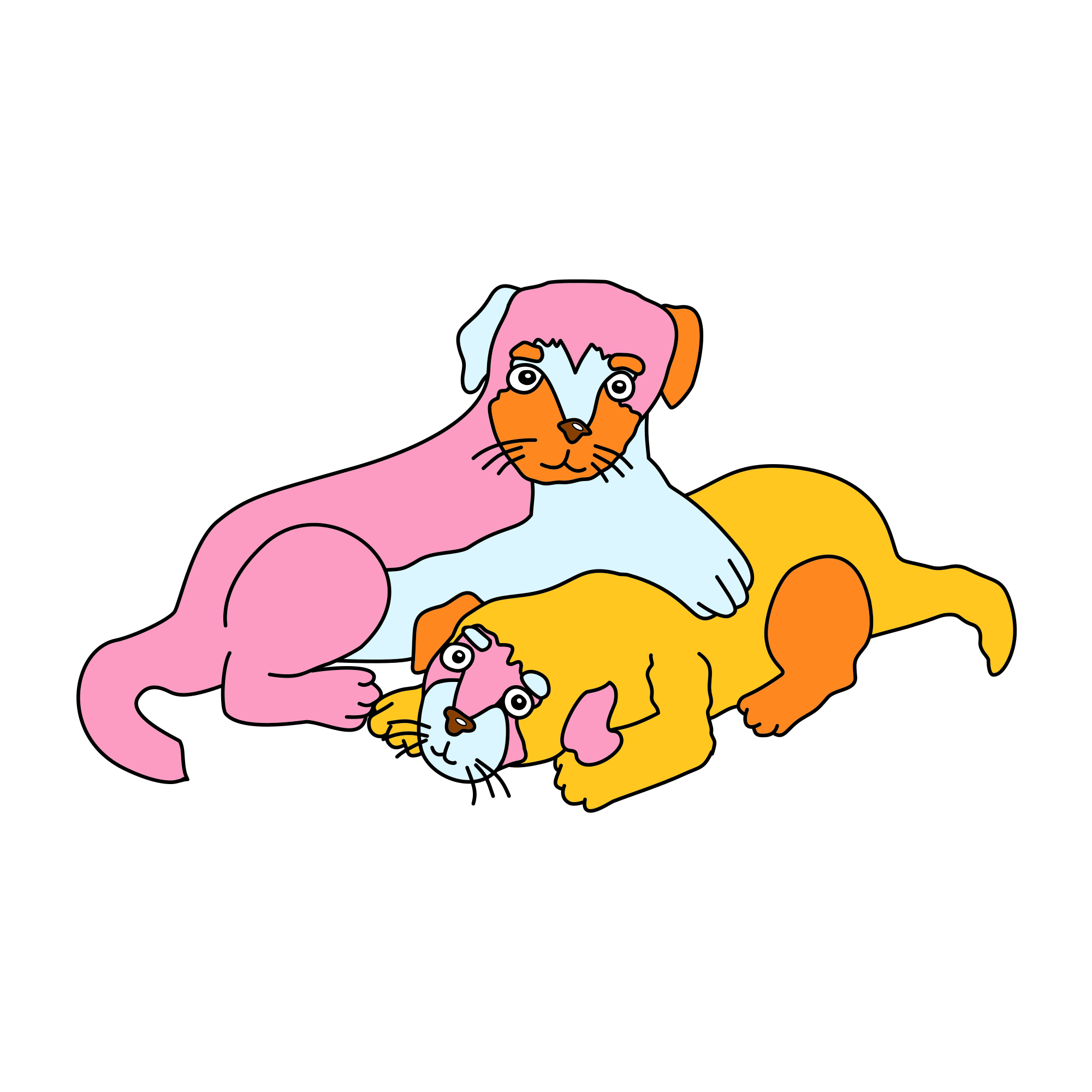 - cute dogs derpy dogs stylized dogs zeruah h guernsey caswell colorful lineart coloring book page coloring book line art linework line work puppies doggos dogs