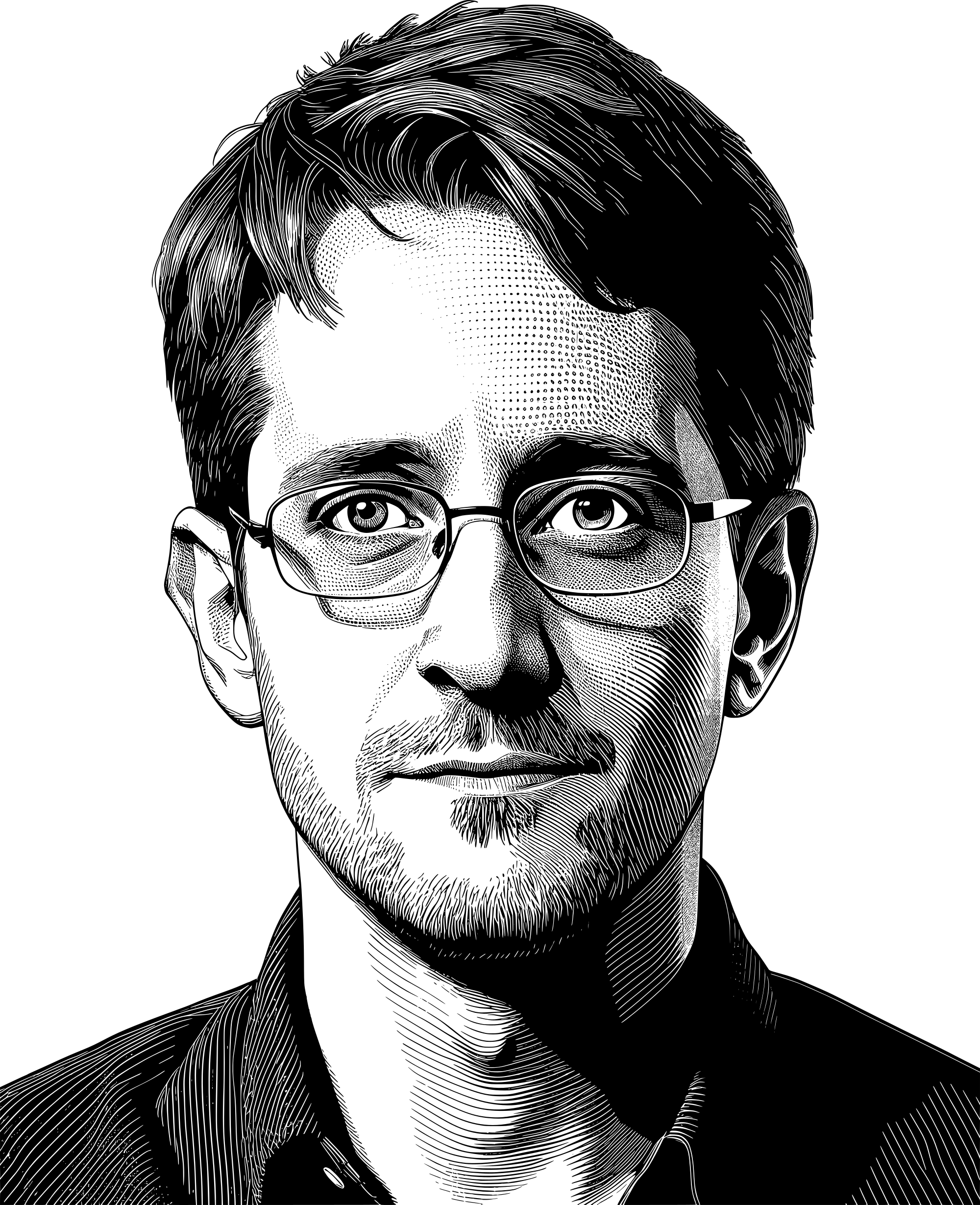 - Edward Snowden Portrait Activist Whistleblower Surveillance Privacy IntelligenceAgency CIA DHS NSA Spying Police State Monitoring Politics Man Human People Person LineArt ai_art