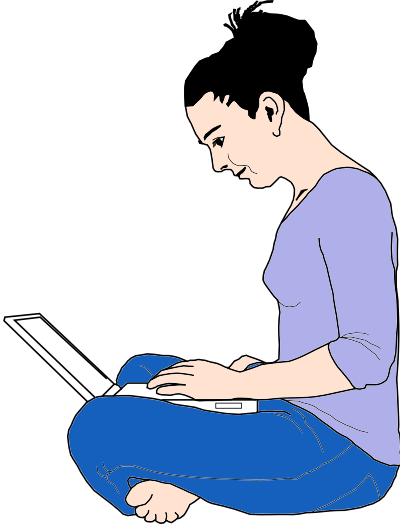 A remix of the original "girl typing" now with color and a few eye and nose changes.