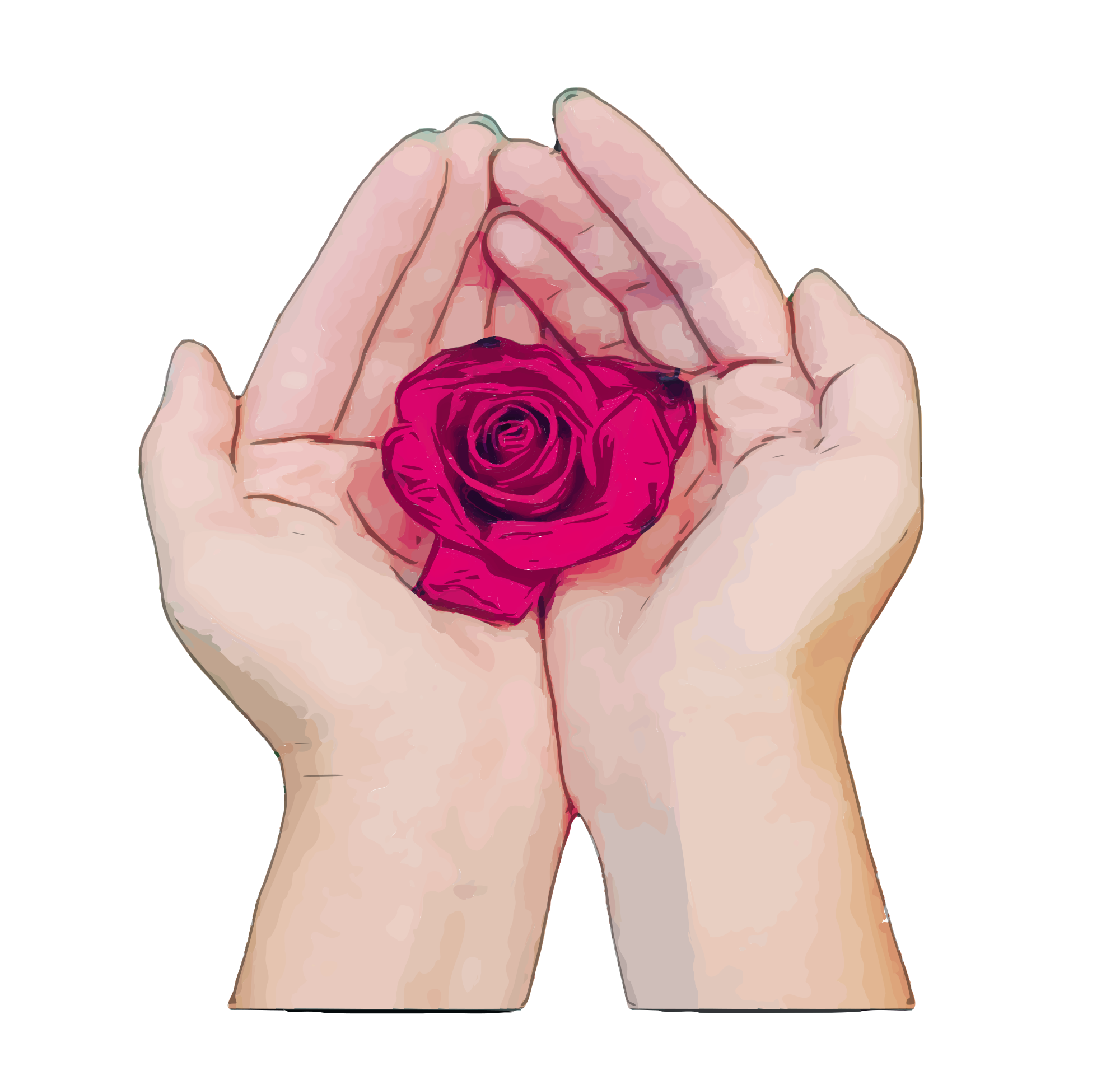 These two hands are cradling a bright red rose (sources from a public domain USAF graphic)