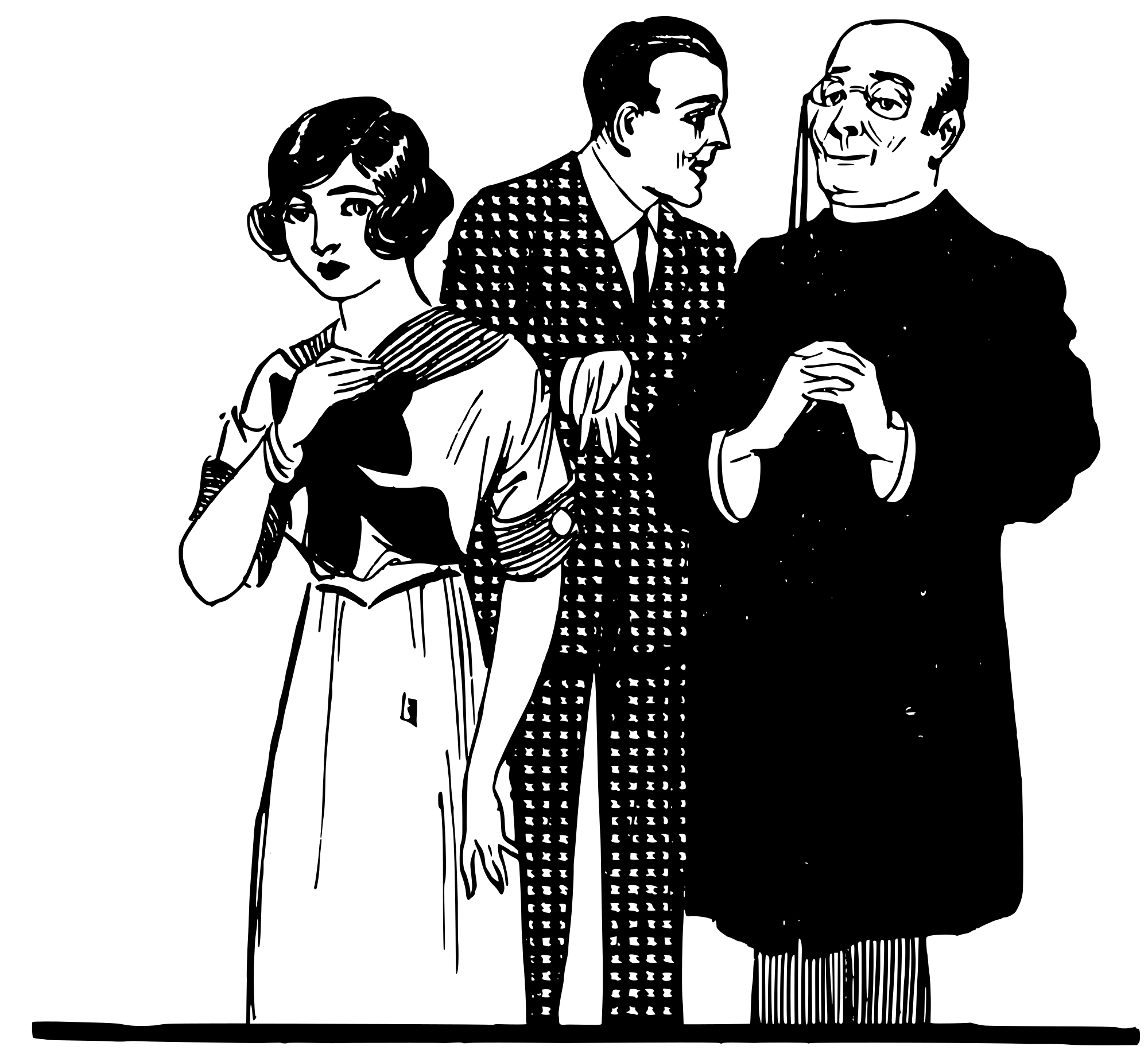 three people (one woman and two men)... what are they talking about?