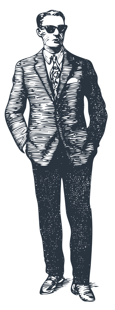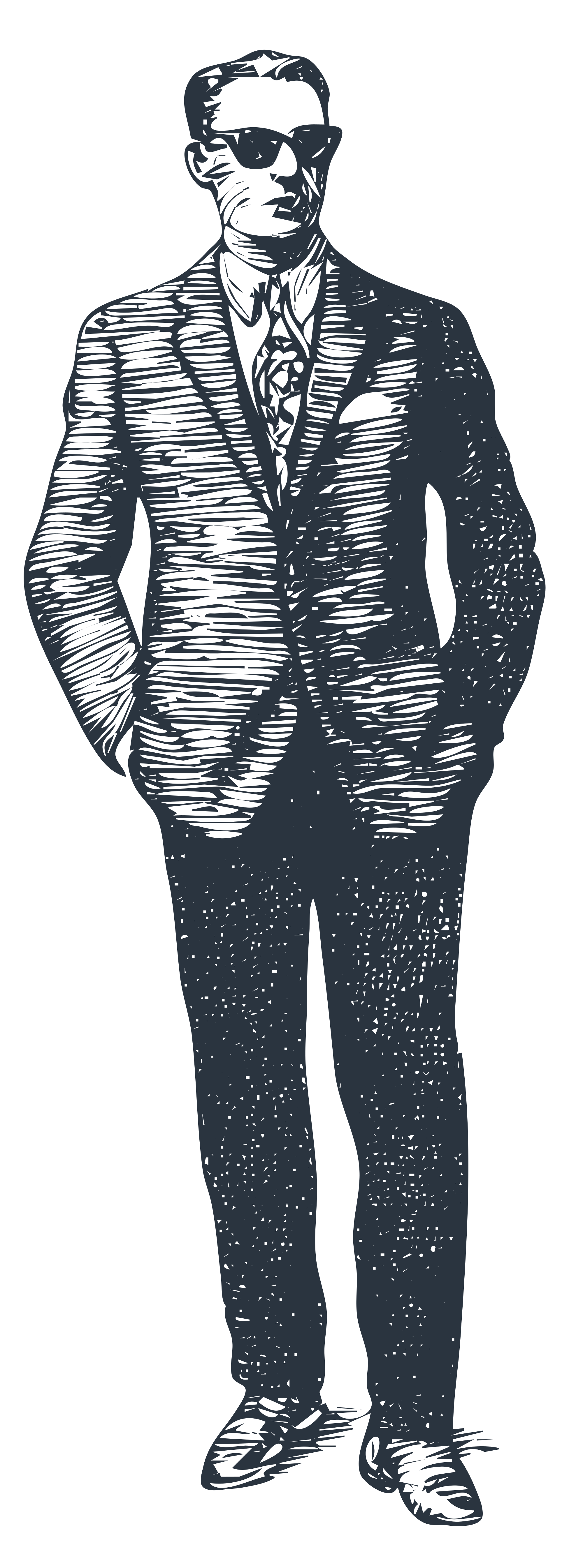 black & white image of a man in suit