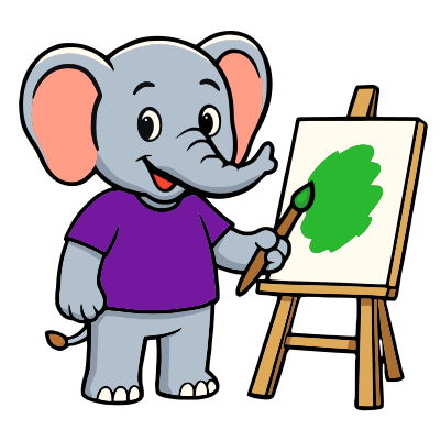 anthropomorphic elephant artist really likes one colour.... green!!