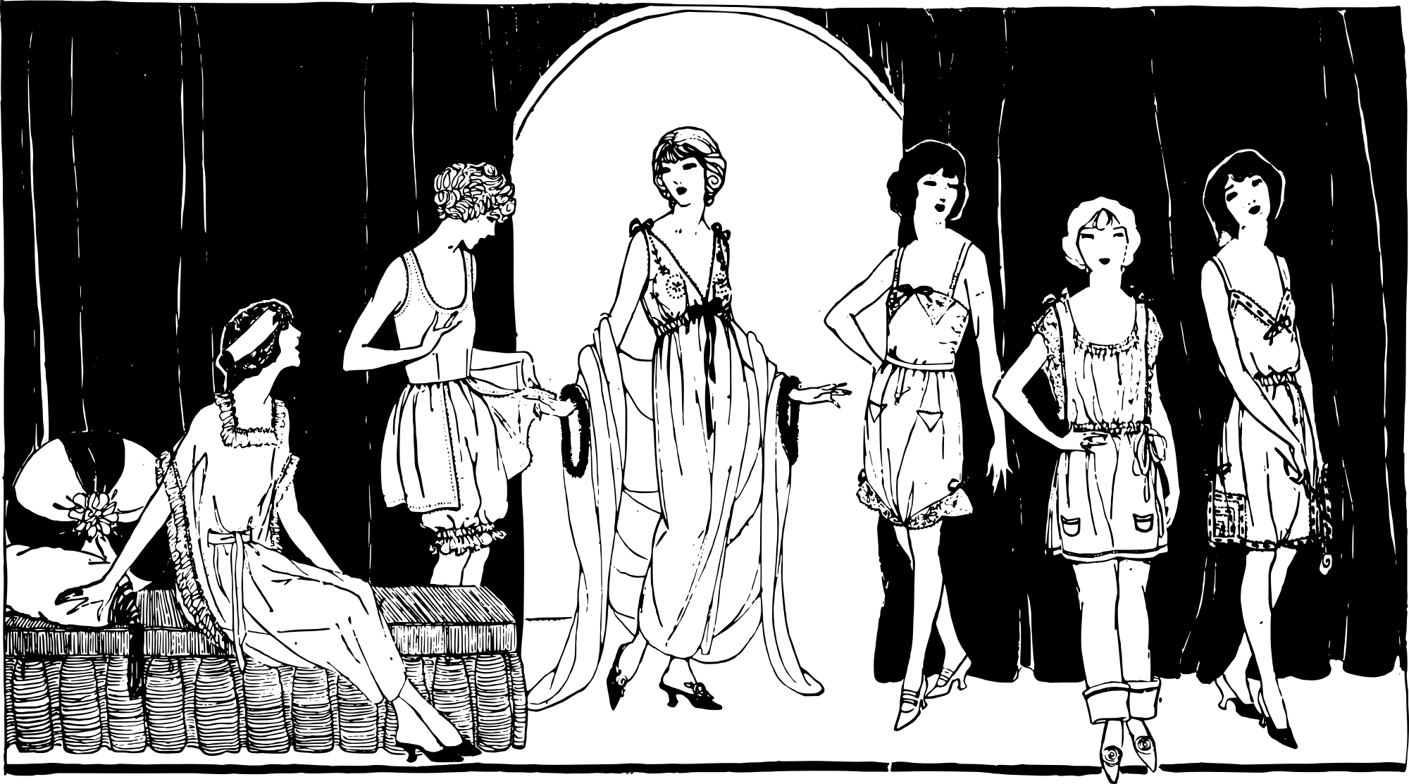 - six ladies women fashion style woman female retro vintage 1921