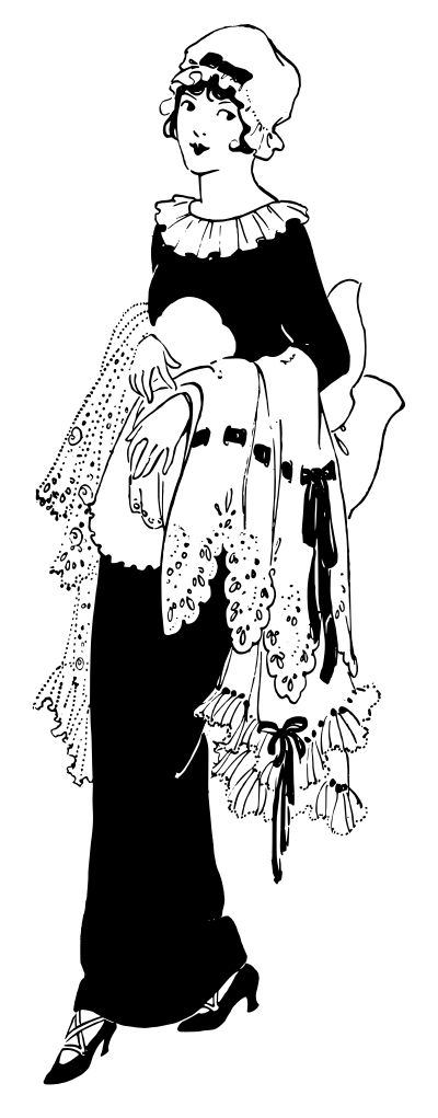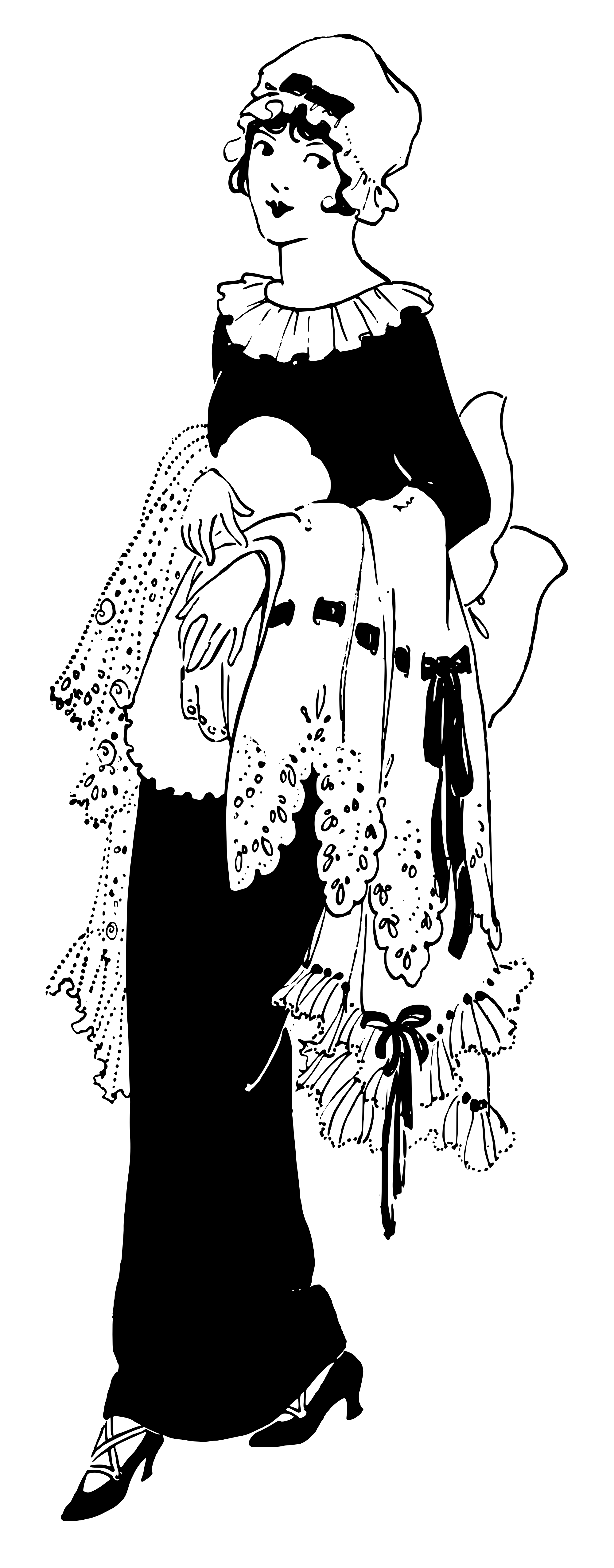 woman in a bonnet holding a dress