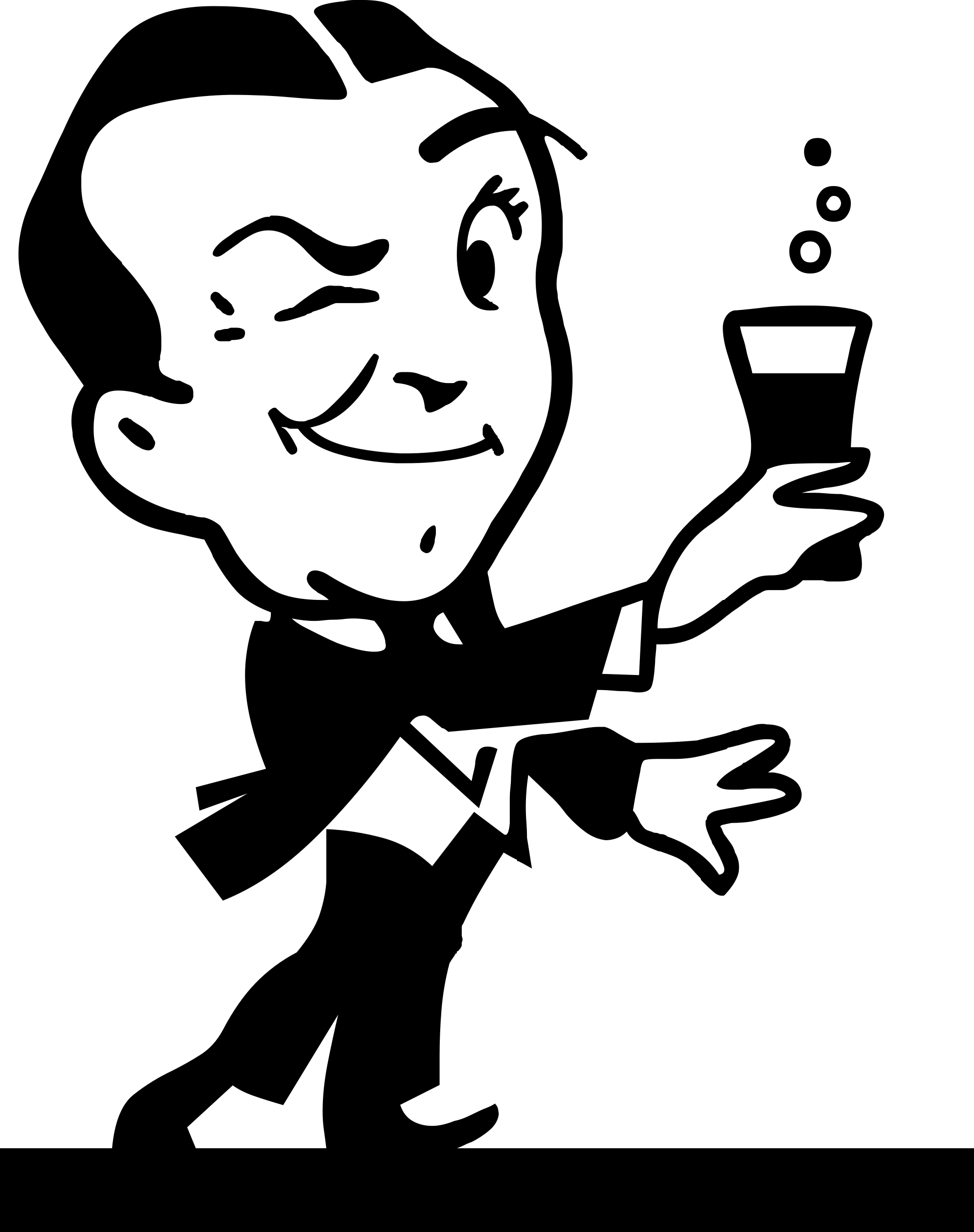 A man in tails is winking and holding a bubbling glass up high.
