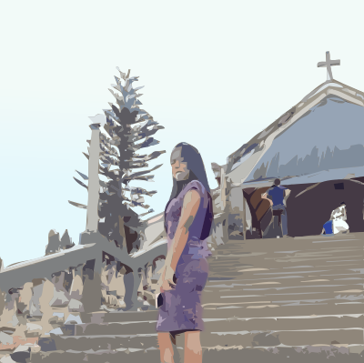 a woman standing on some stairs (I thought I'd offer a slight touch up of an automatically vectorized clipart image from 2018)