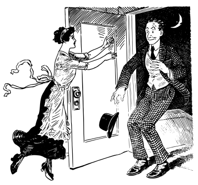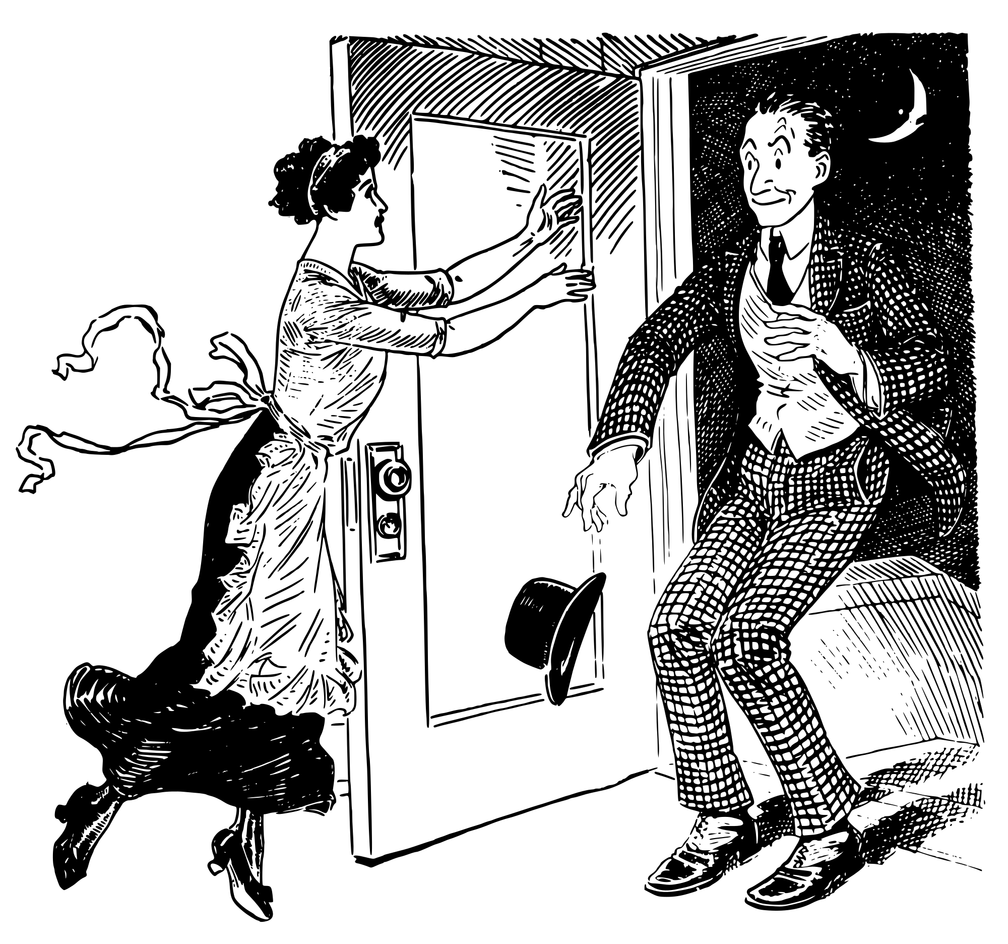 a happy lady greets a man who is coming home at night