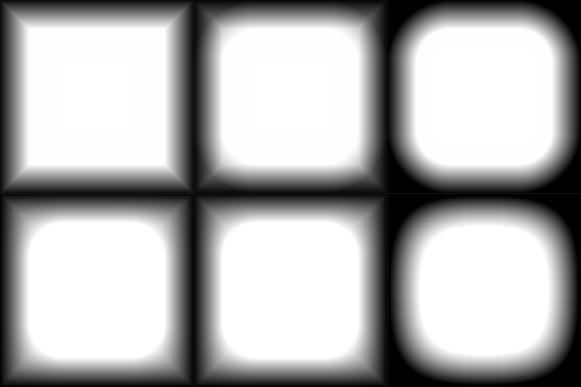 A set of squares filled with a black to white gradient from the borders.