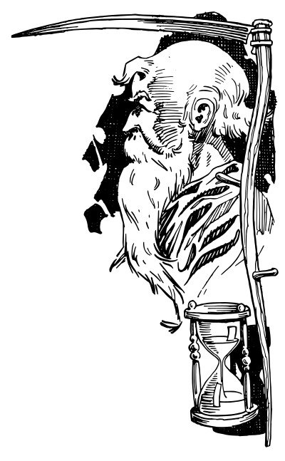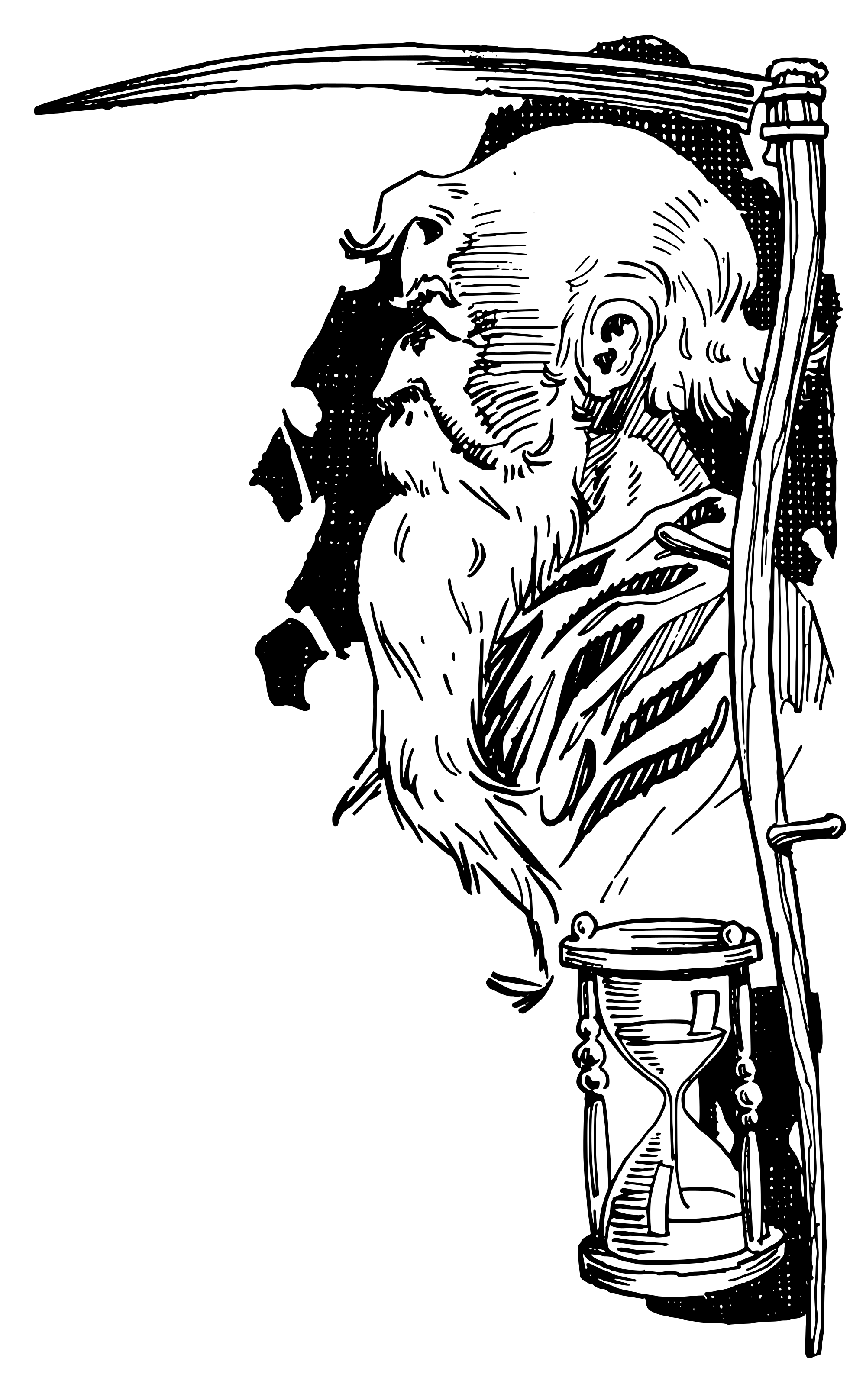 father time with a scythe and an hourglass