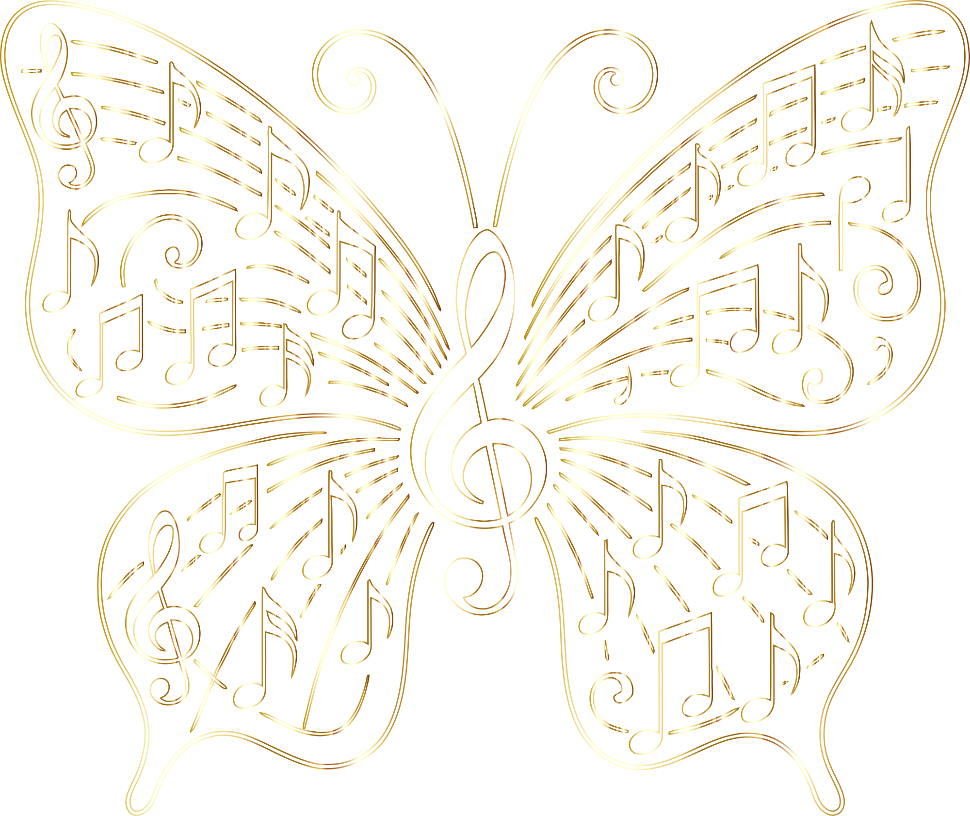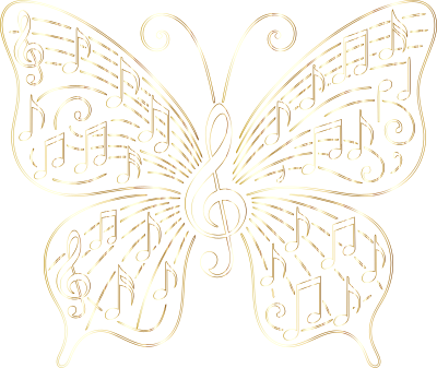 Music Butterfly Vectorized Line Art Gold No BG