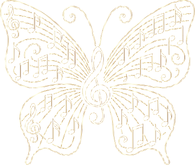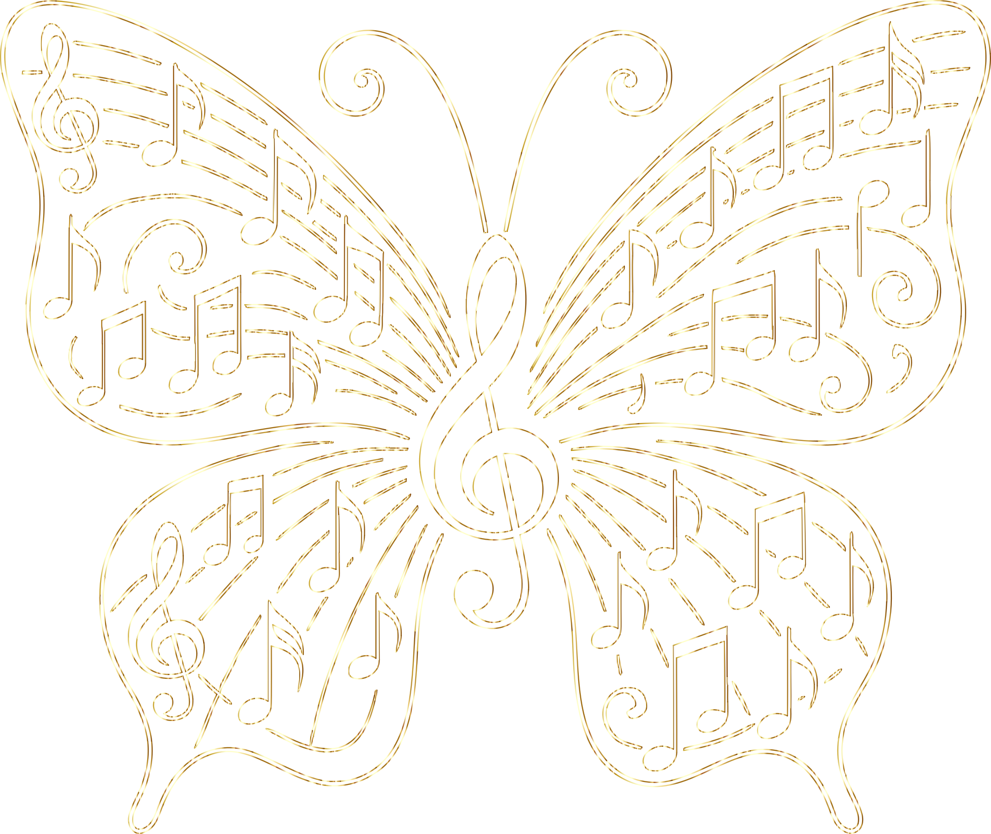 Music Butterfly Vectorized Line Art Gold 2 No BG