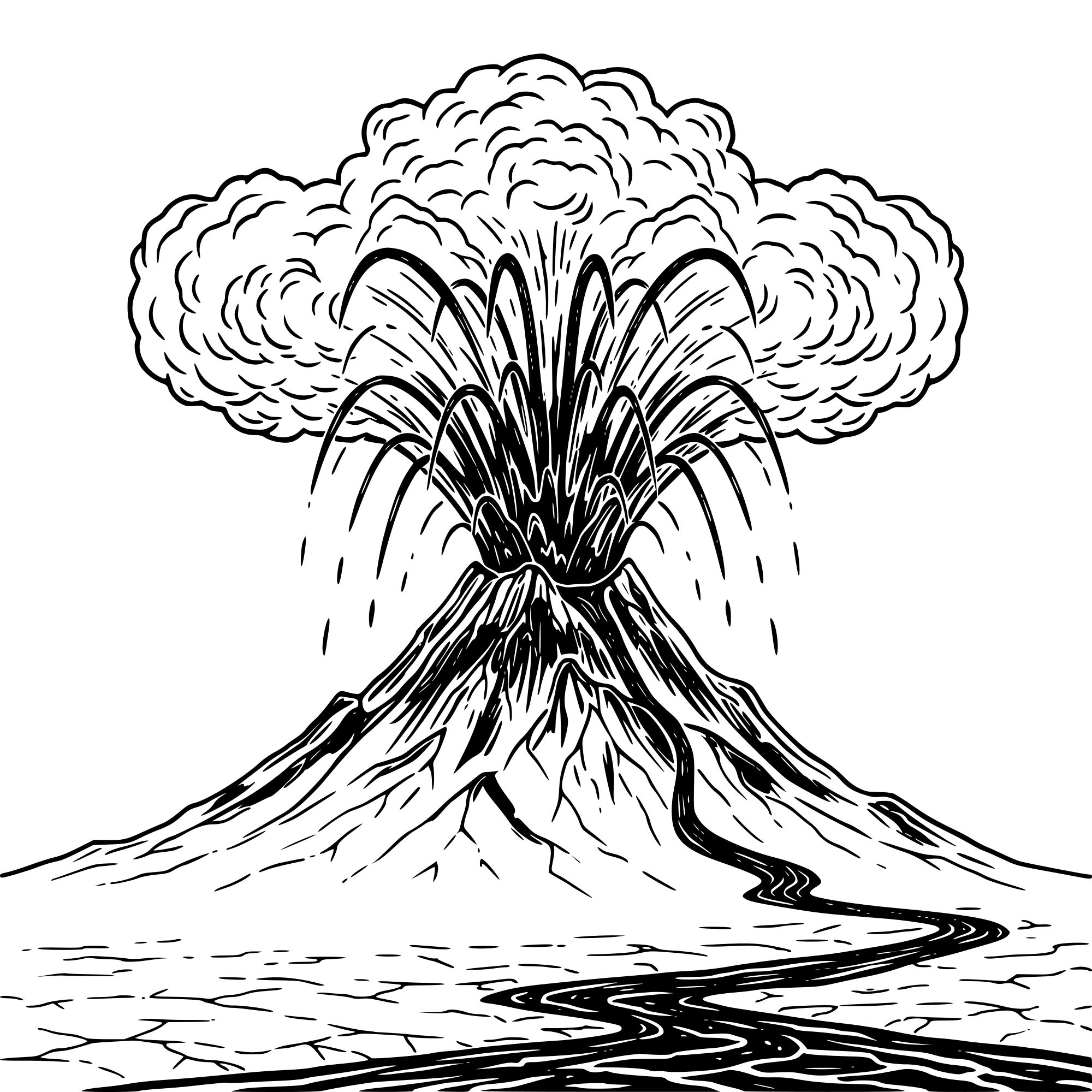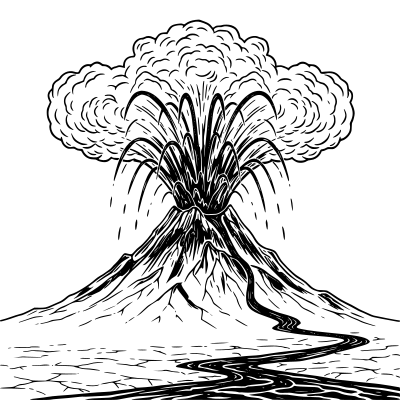 The prompt was simple: make a black and red illustration with firm high contrast image of red lava shooting out of a volcano