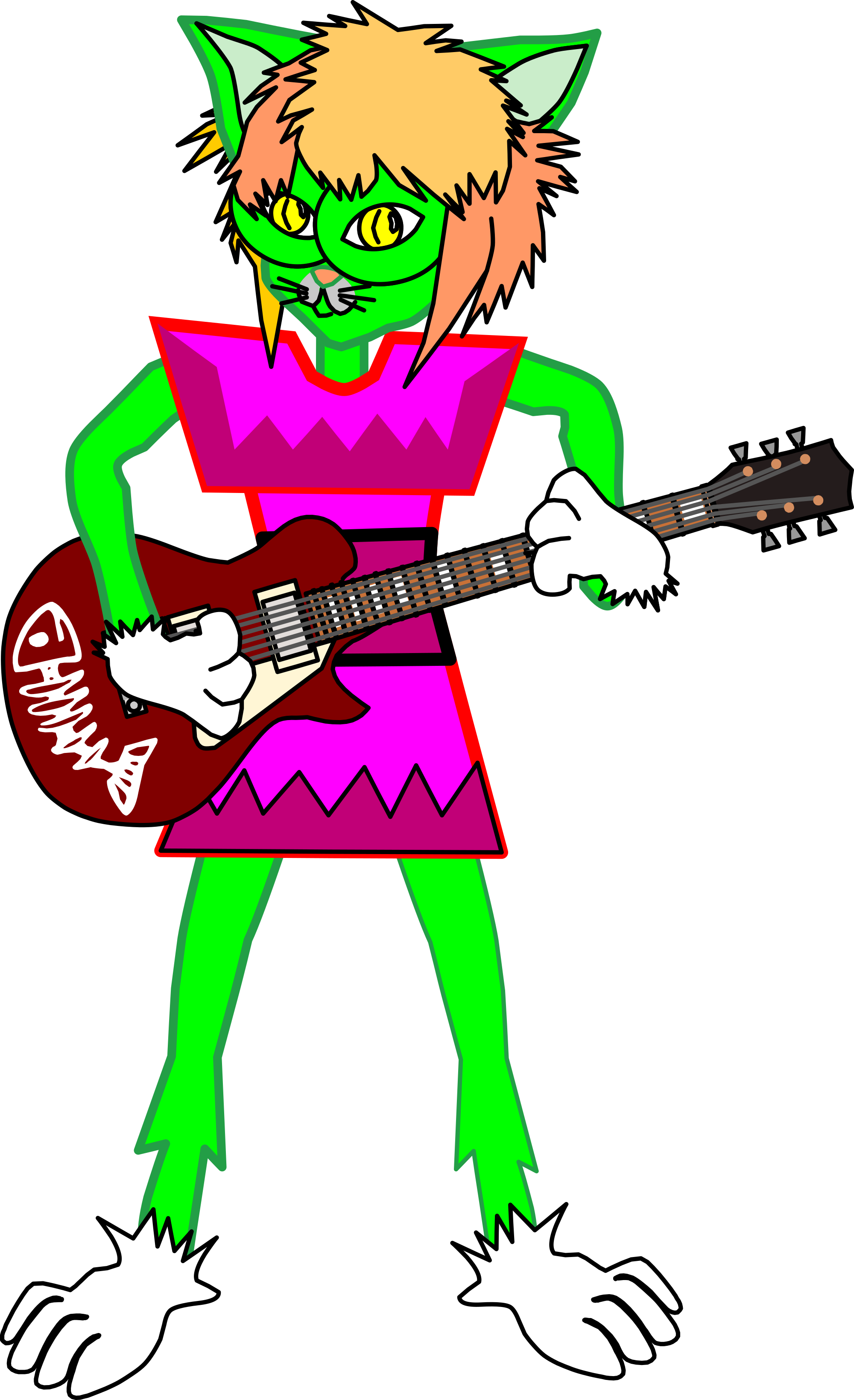 Intended for animation, all relevant body parts are separate. Fixed guitar so it's a right handed player, and fixed character accordingly.