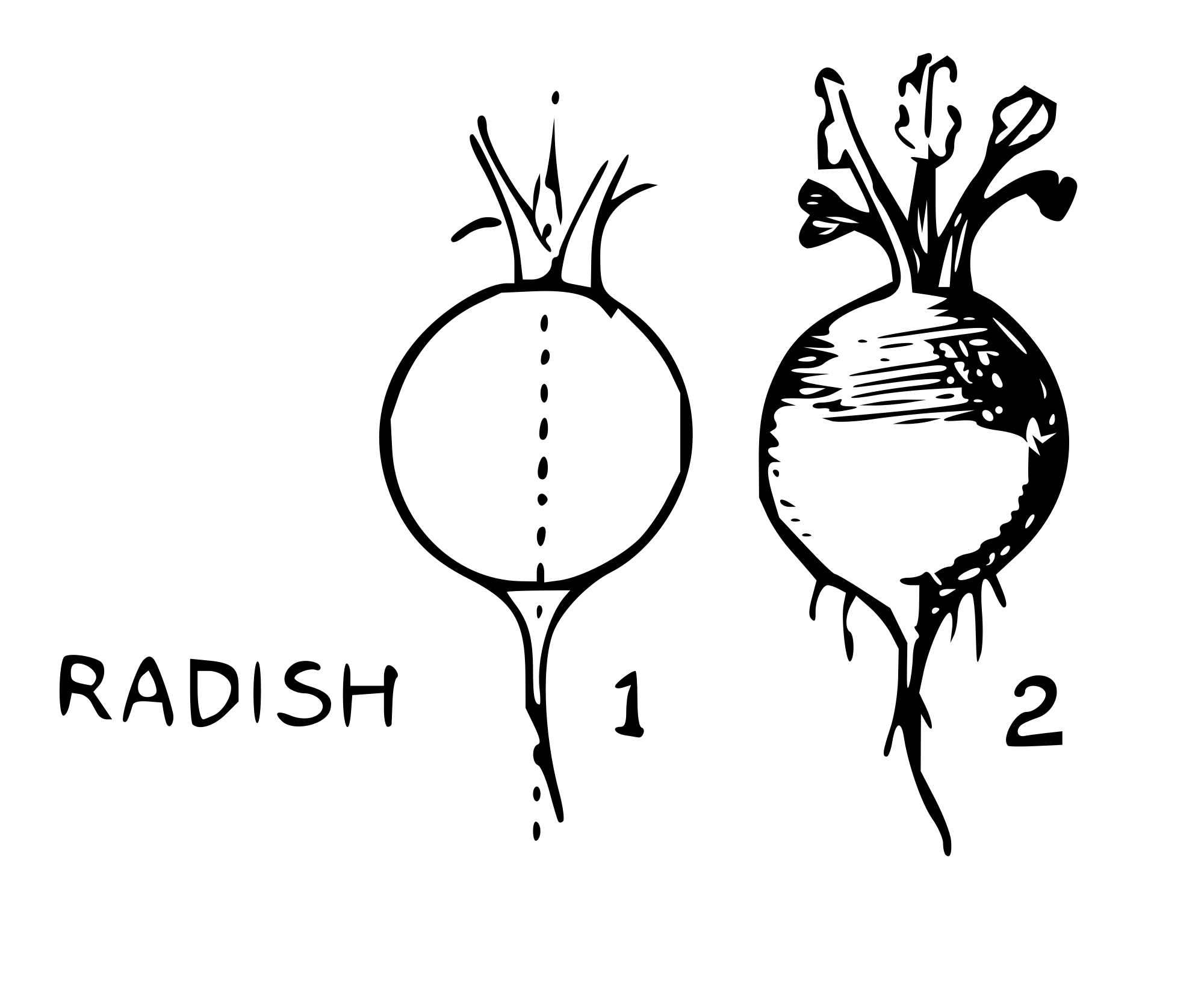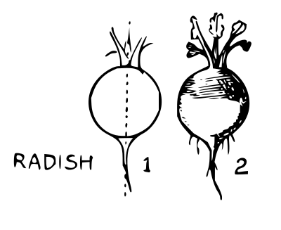 Image of a radish from E. G. Lutz book "Drawing made easy", 1921, page 23. Available at https://archive.org/details/drawingmadeeasyh00lutz/page/22/mode/2up