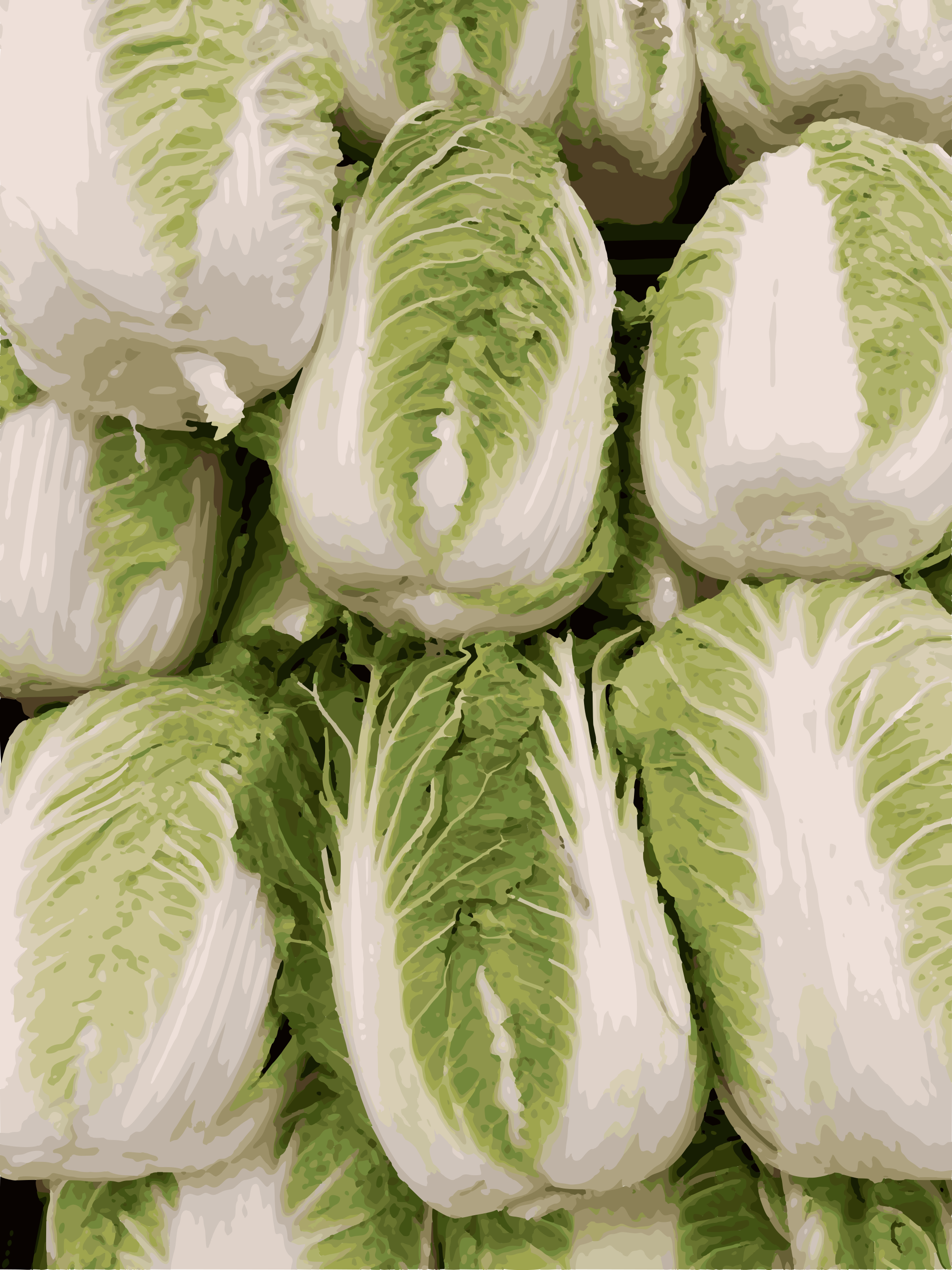 A big pile of fresh Napa cabbages (based on a public domain photo shared by Bayartai on Wikimedia)
