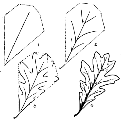 Image of an oak leaf from E. G. Lutz book "Drawing made easy", 1921, page 27. Available at https://archive.org/details/drawingmadeeasyh00lutz/page/26/mode/2up